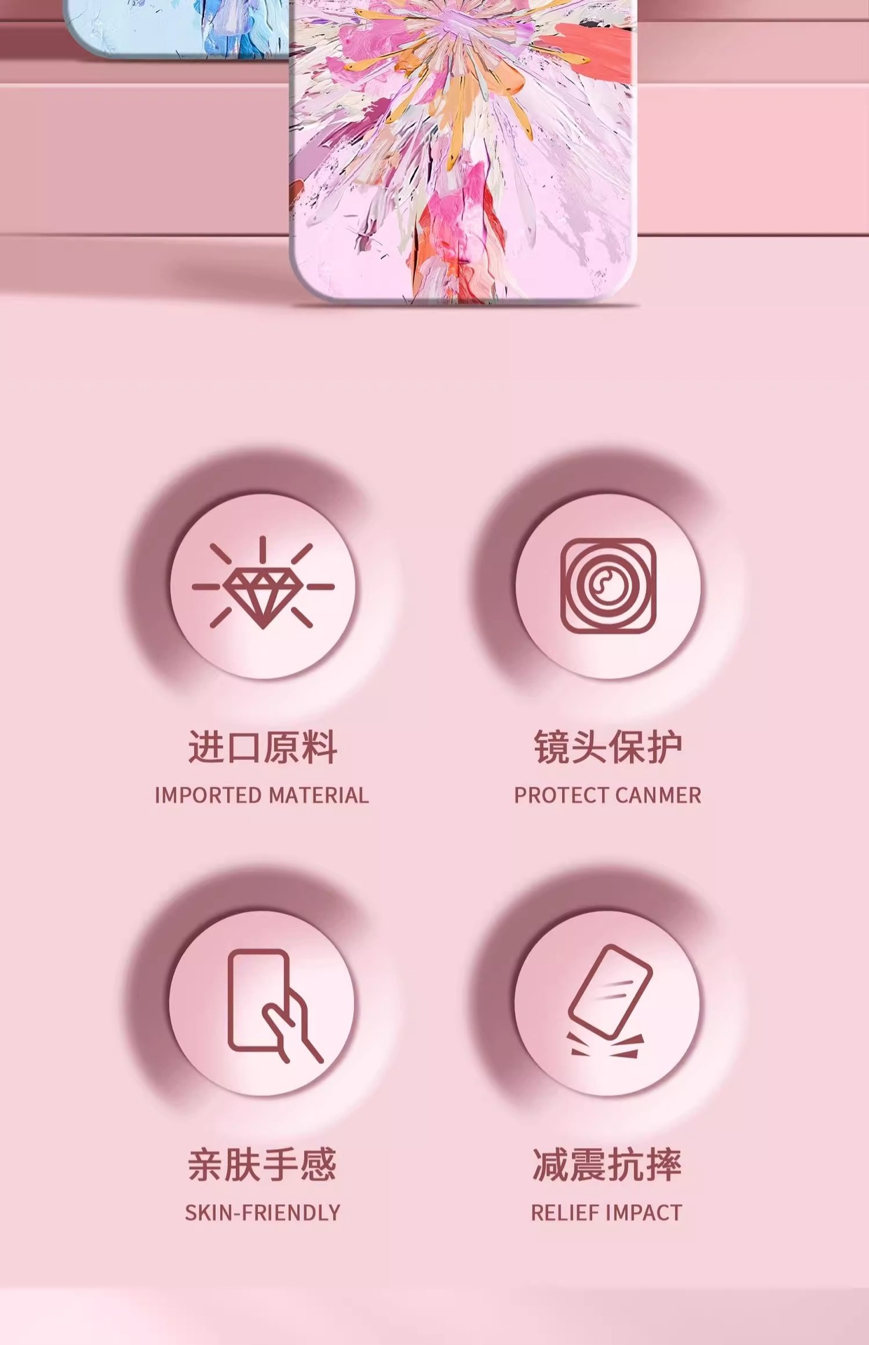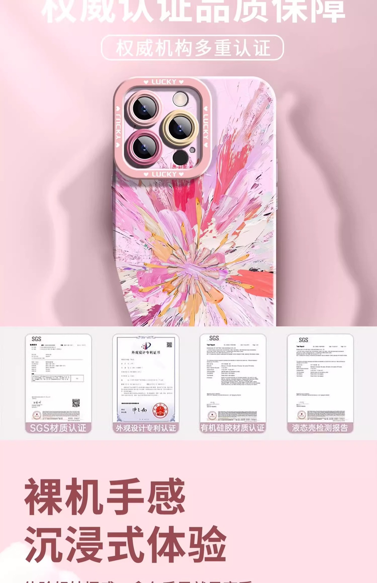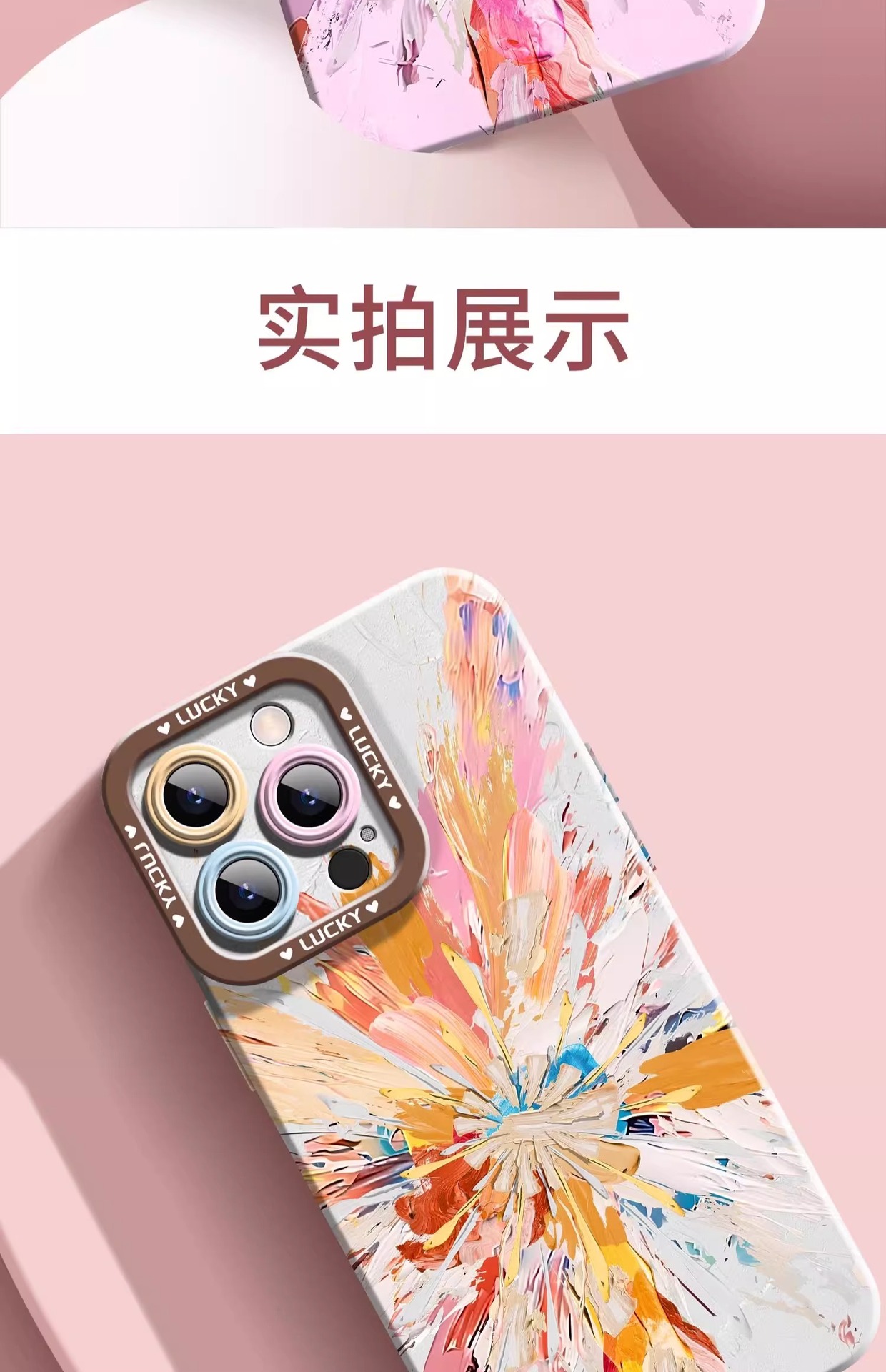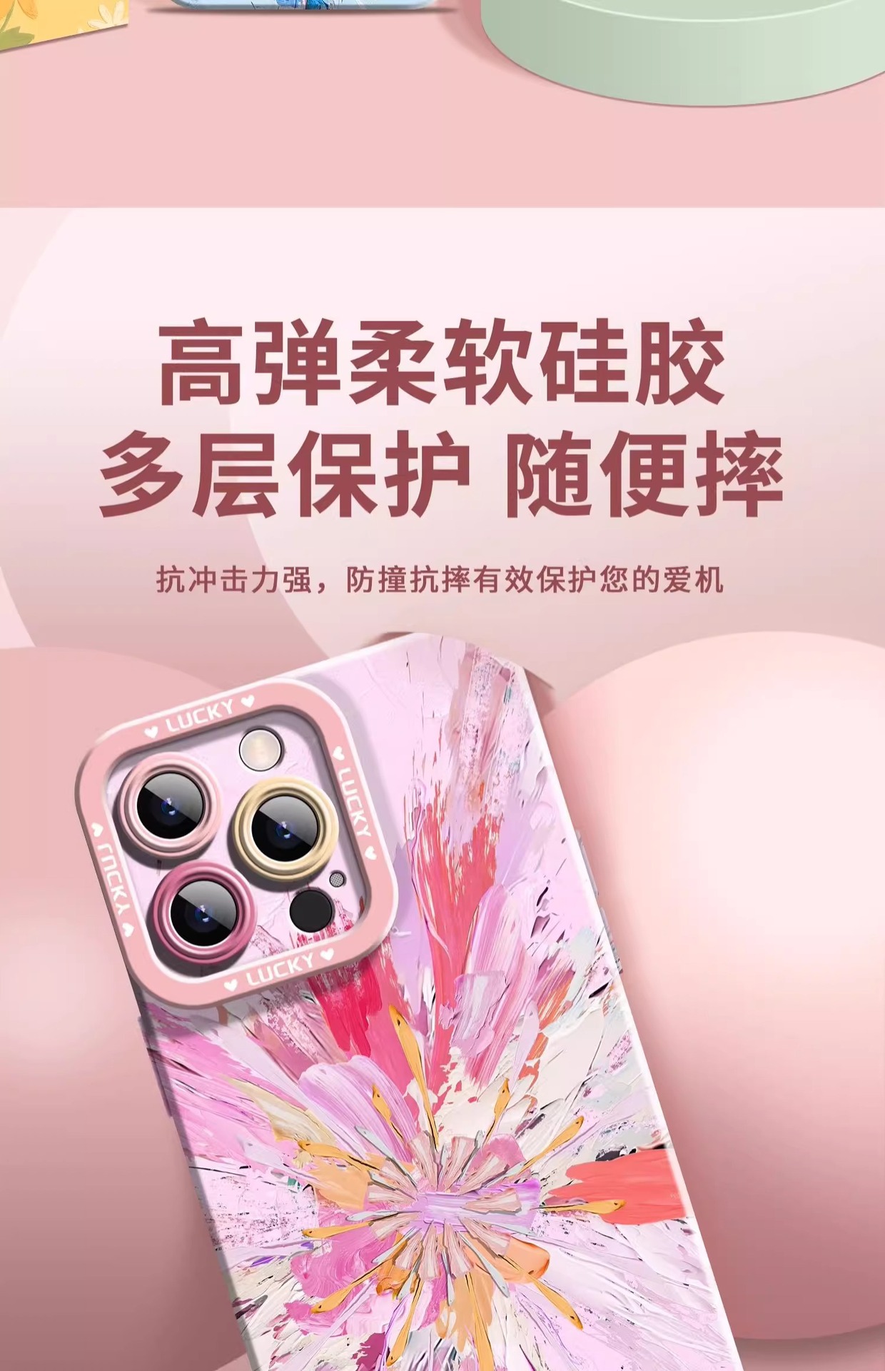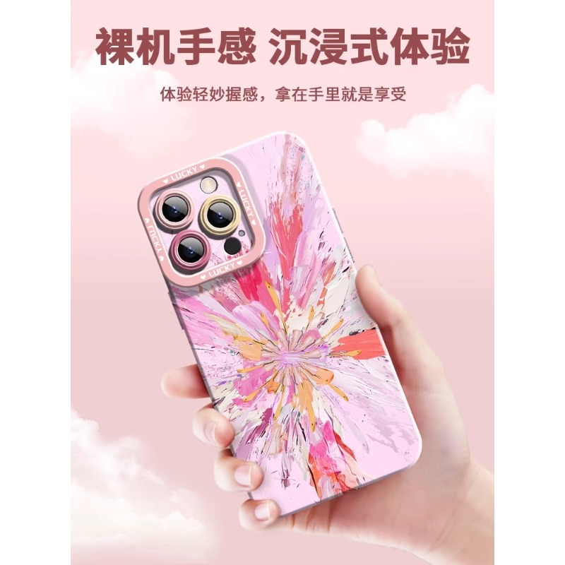 适用于苹果14puls手机壳液态油画烟火硅胶15男女全包iPhone13腕带
