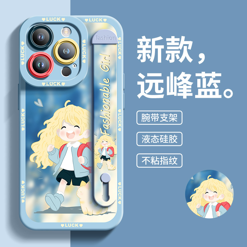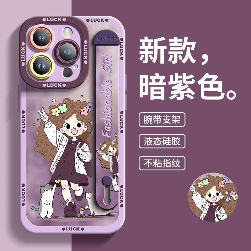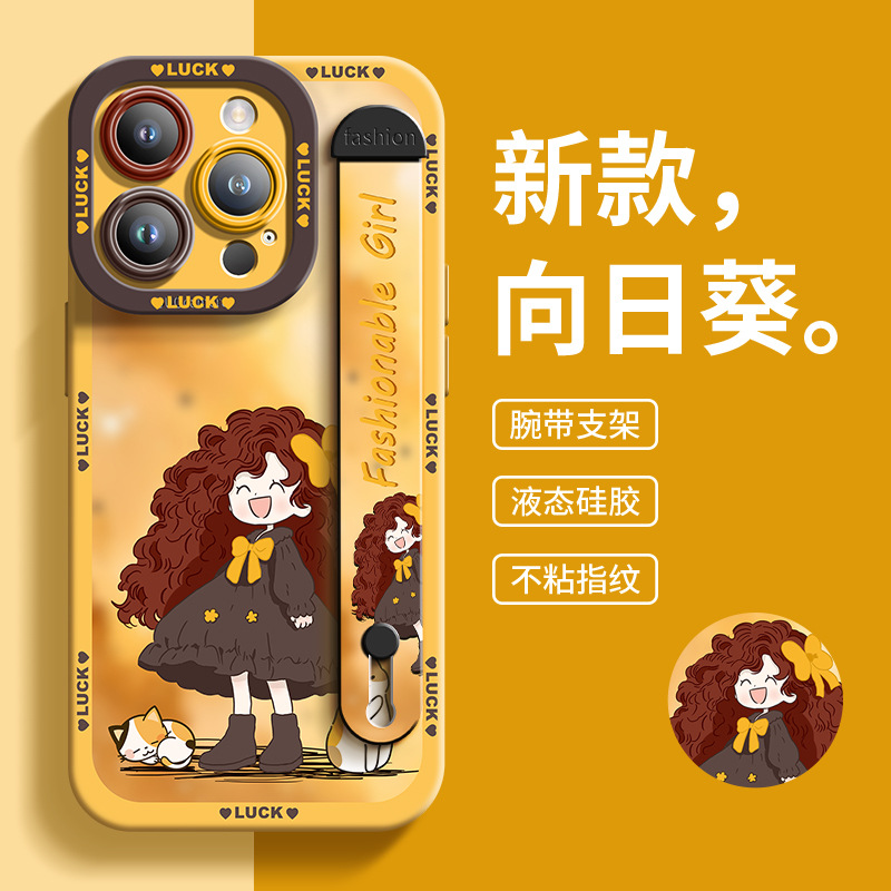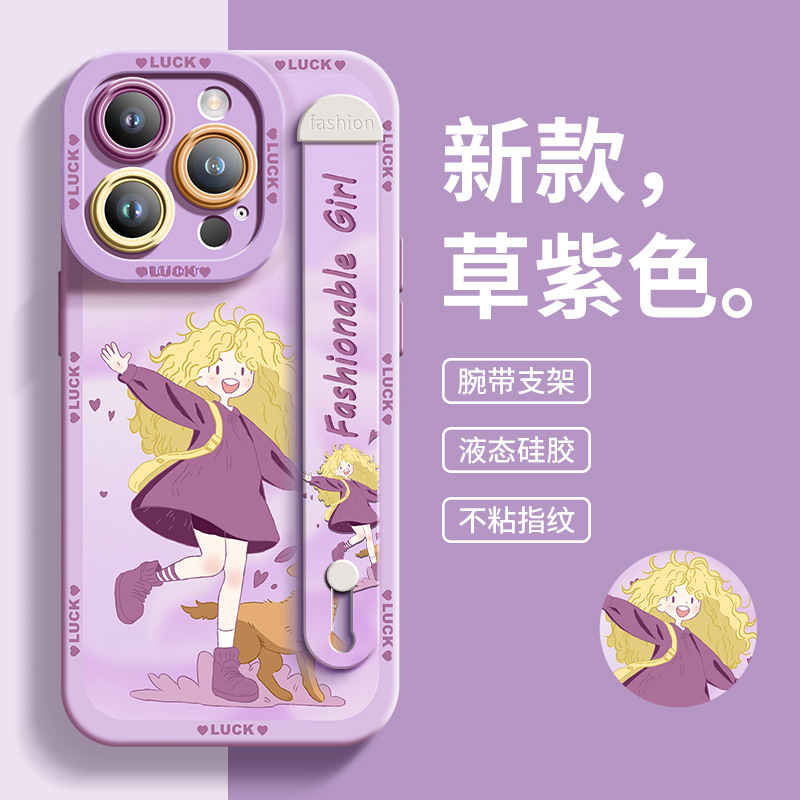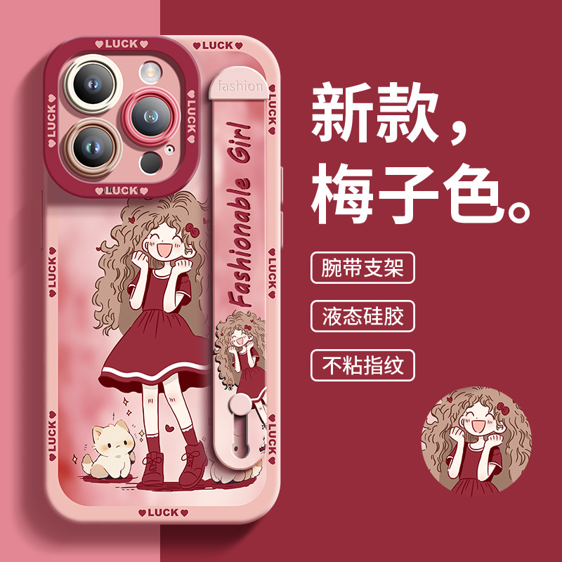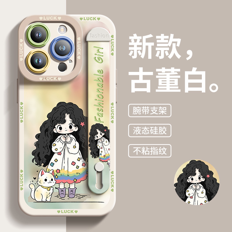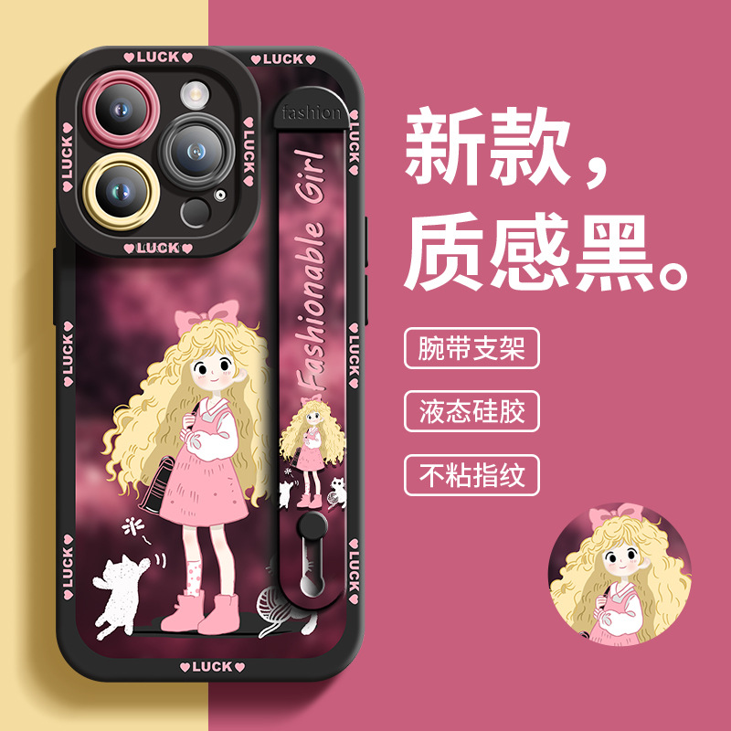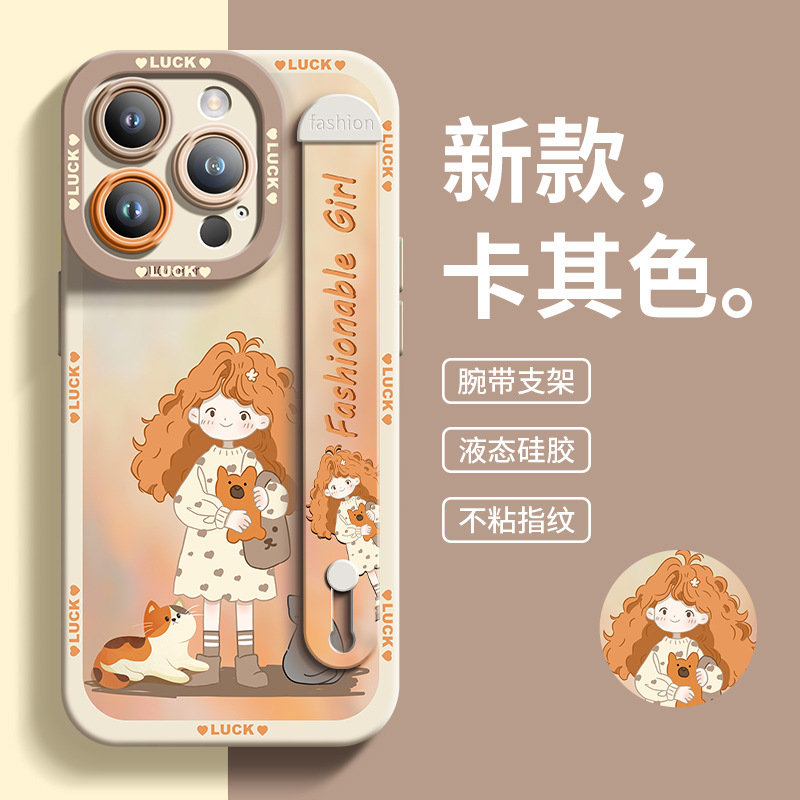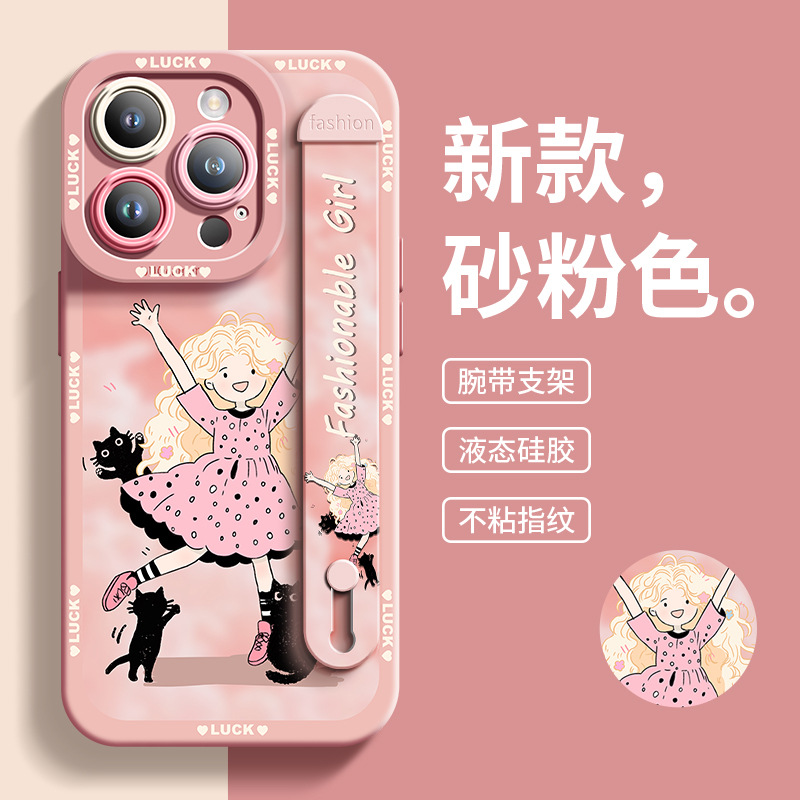 适用于苹果13Pro手机壳女孩与宠物硅胶腕带爆款全包男女14保护壳
