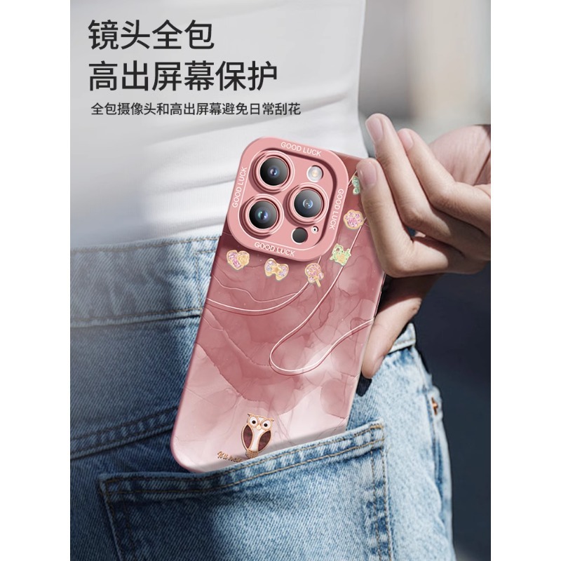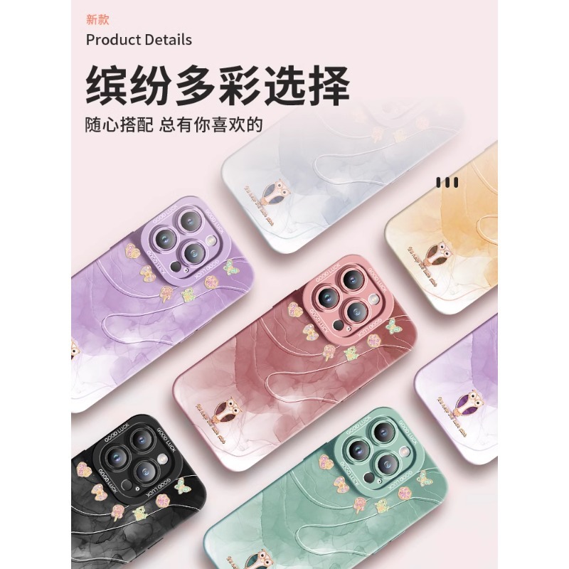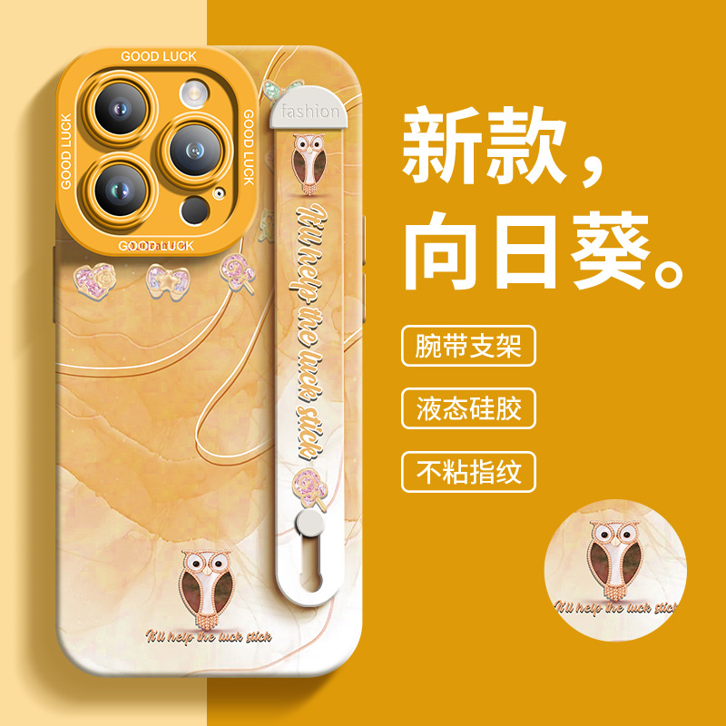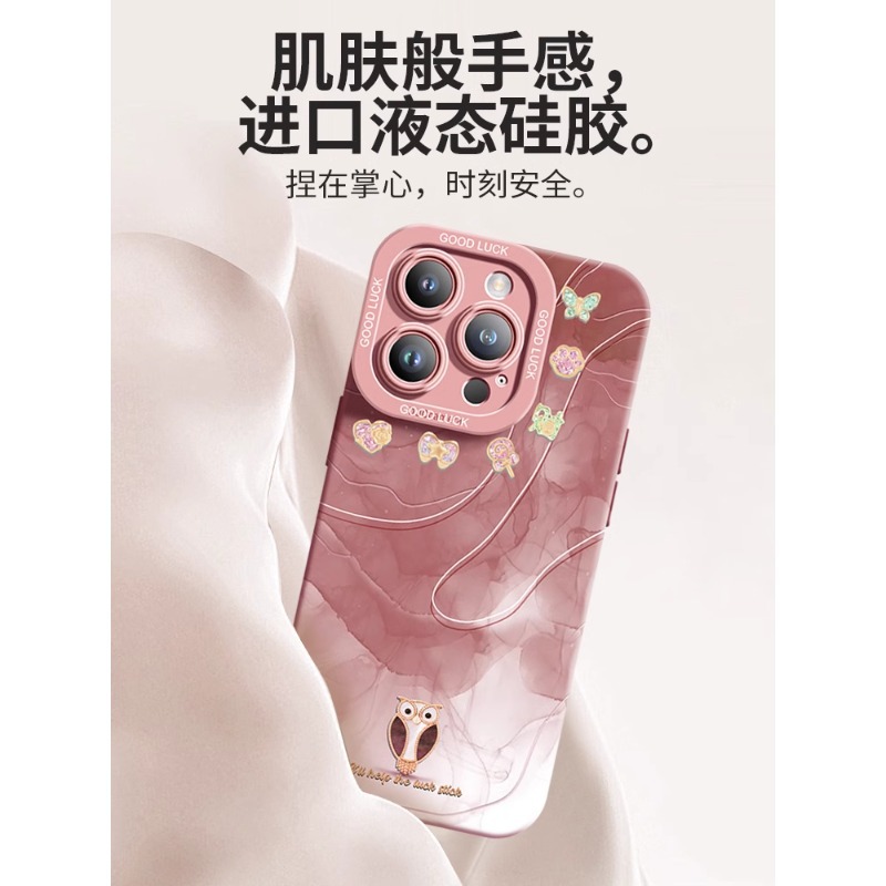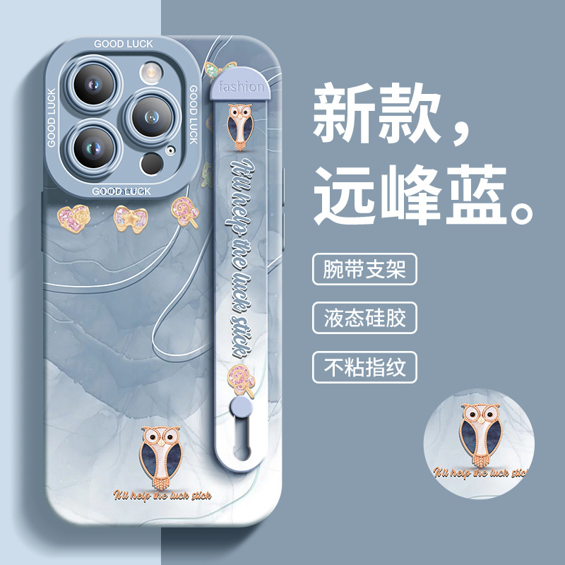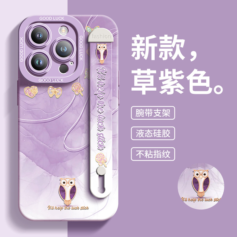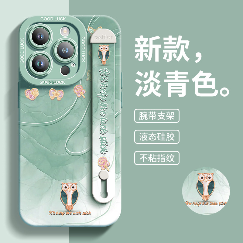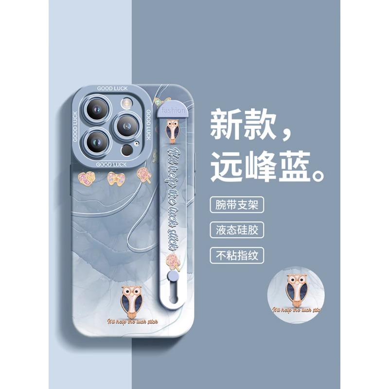 适用于苹果12手机壳超薄猫头鹰全包15硅胶情侣iPhone14腕带保护壳