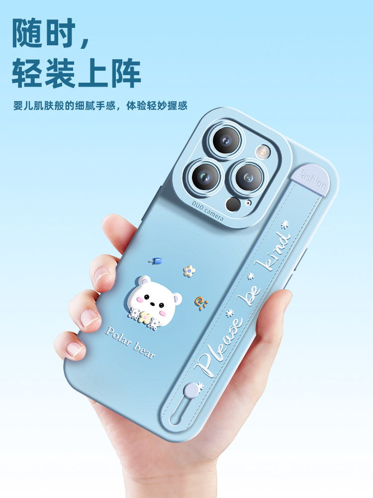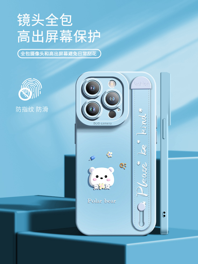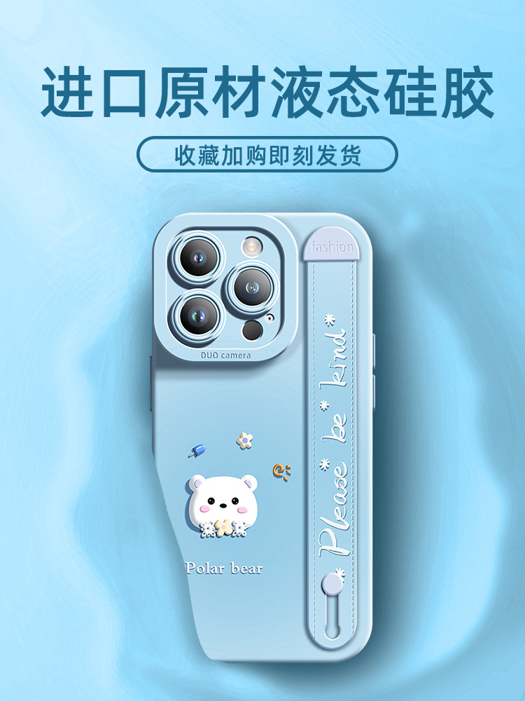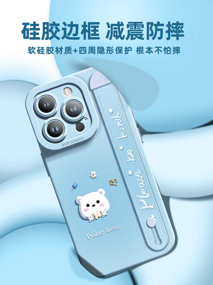 腕带新款适用于苹果15pro手机壳创意iPhone14promax卡通北极熊13