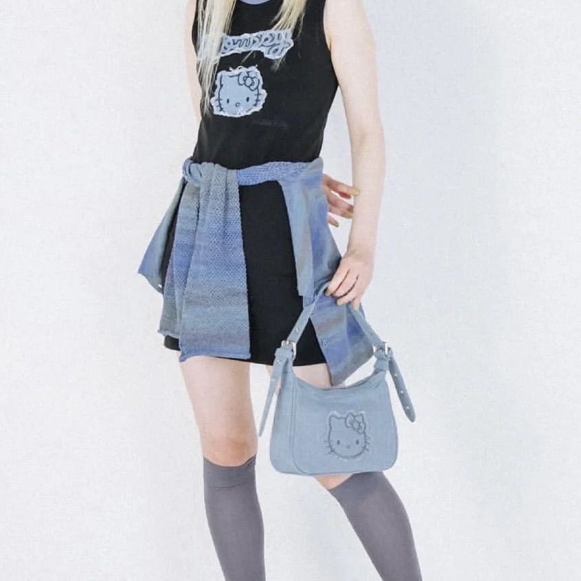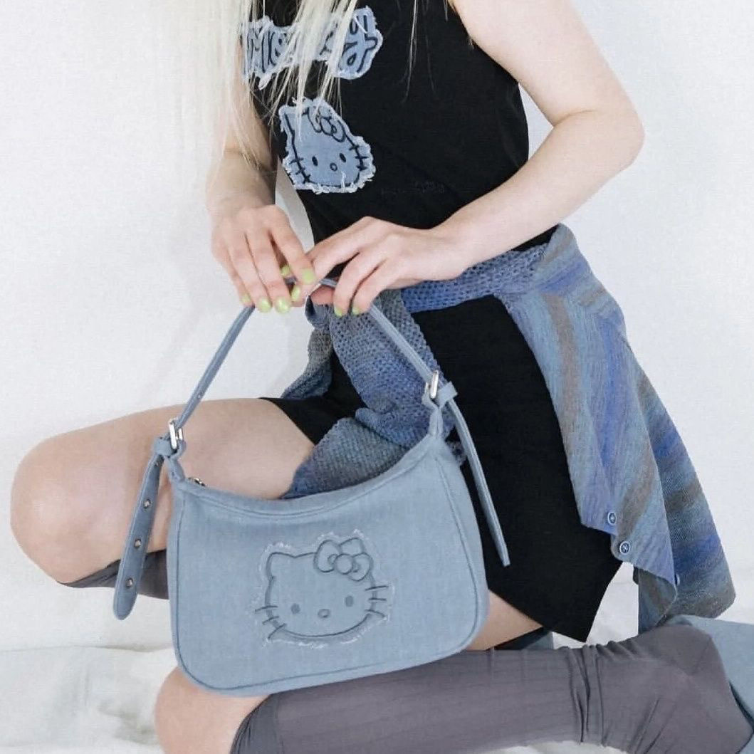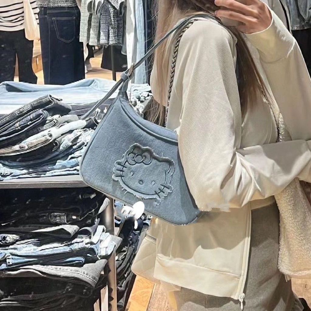 hellokitty50周年牛仔刺绣y2k手提腋下包春夏季新款单肩包