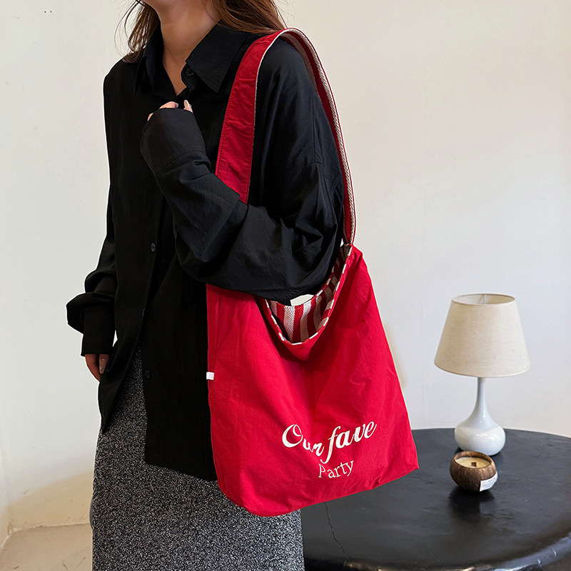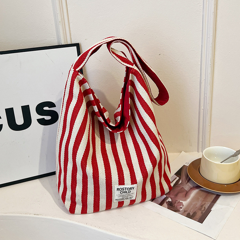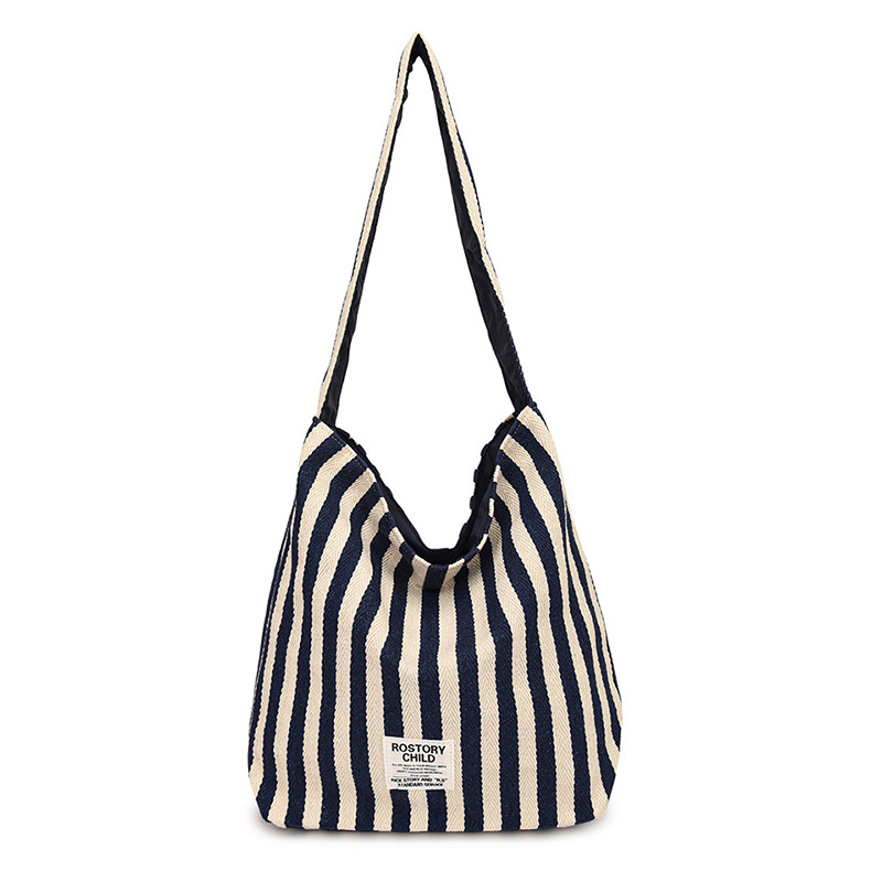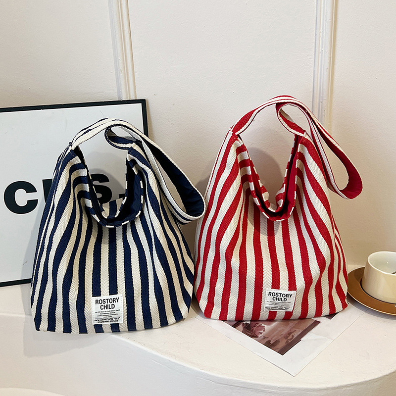 帆布包包女大容量新款时尚条纹字母正反两用女士单肩包水桶包