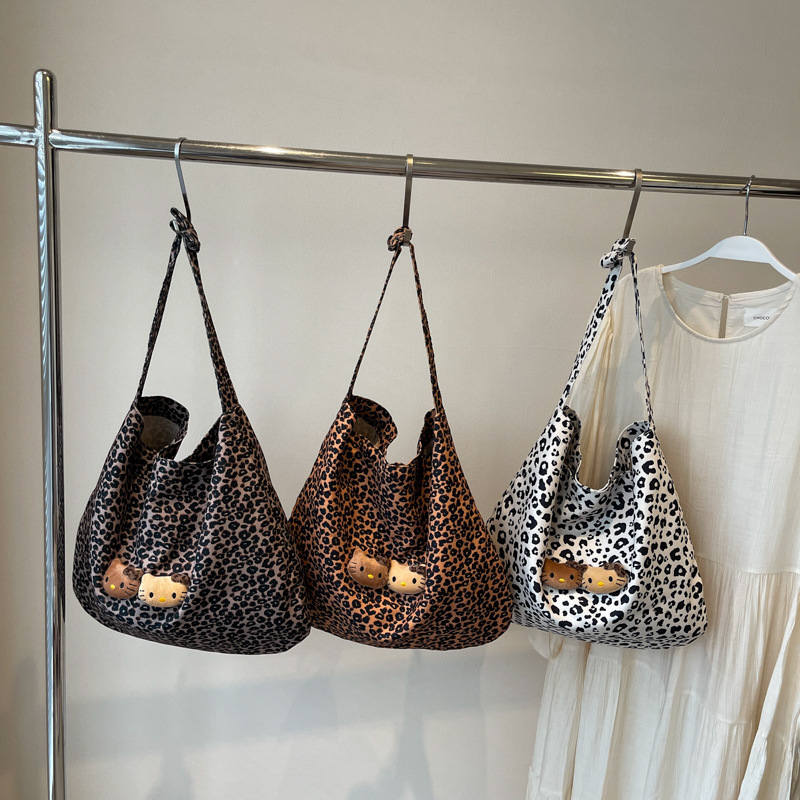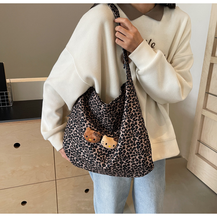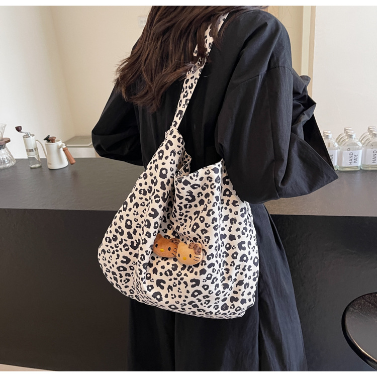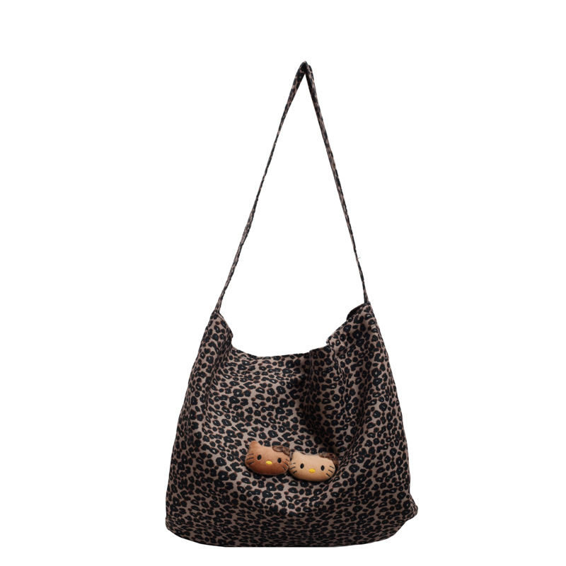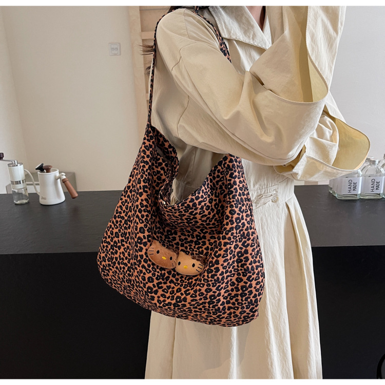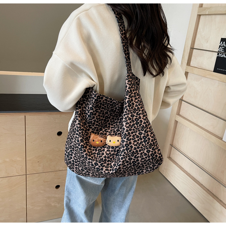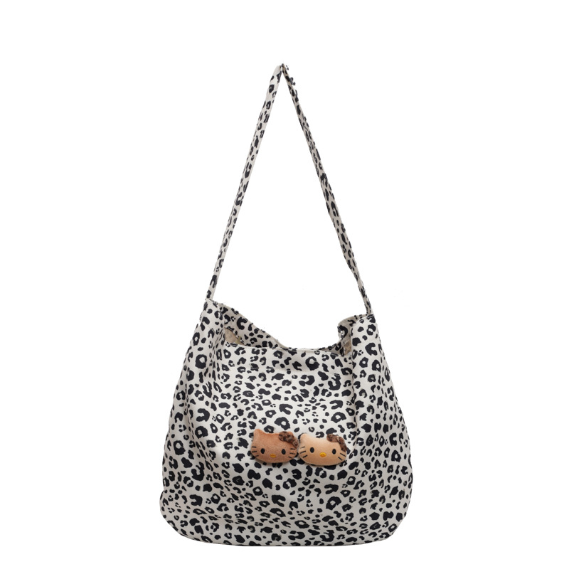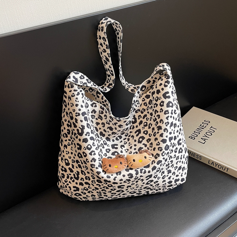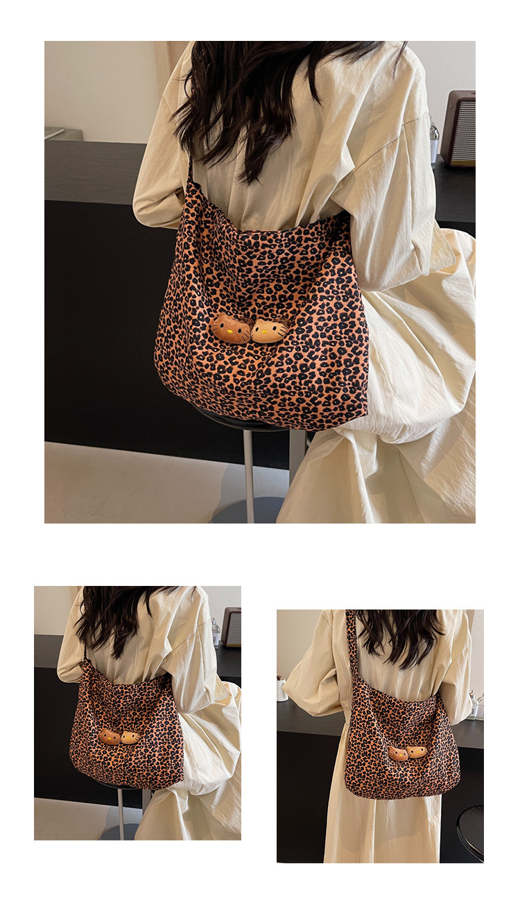 小众ins风豹纹kitty斜挎包女新款大容量轻便百搭帆布袋学生上课包