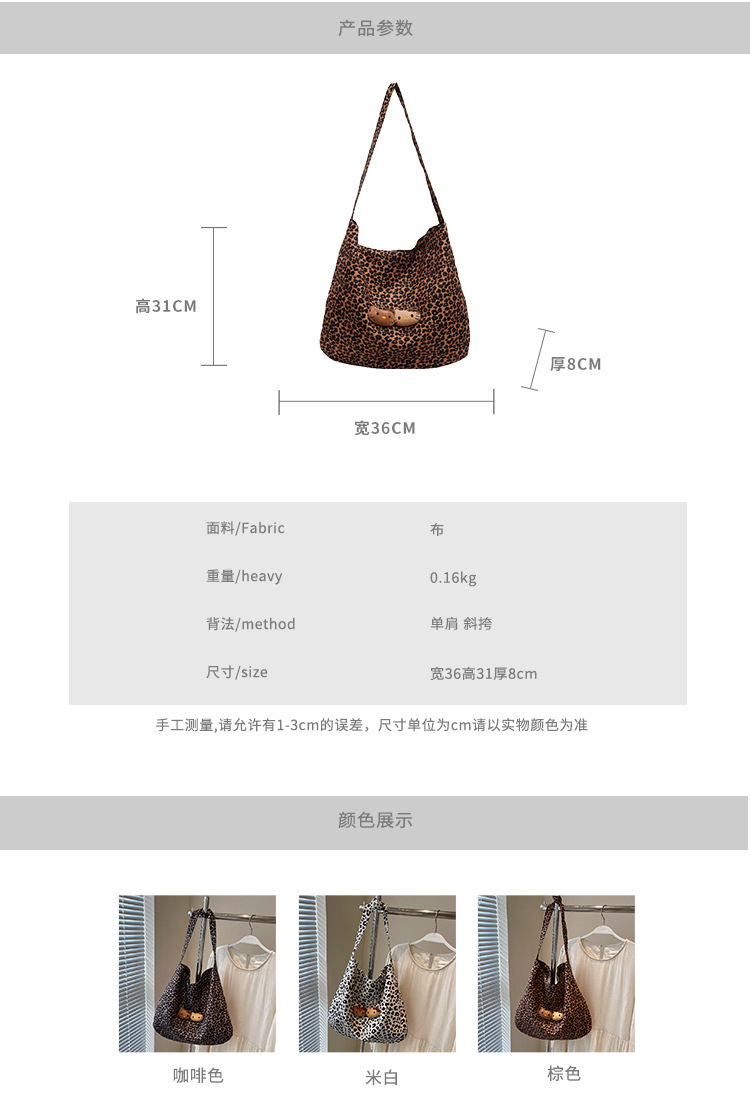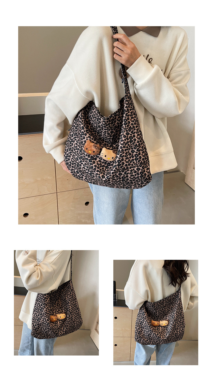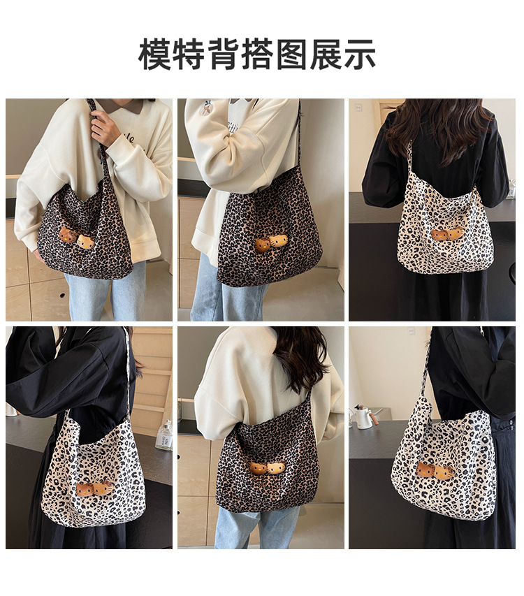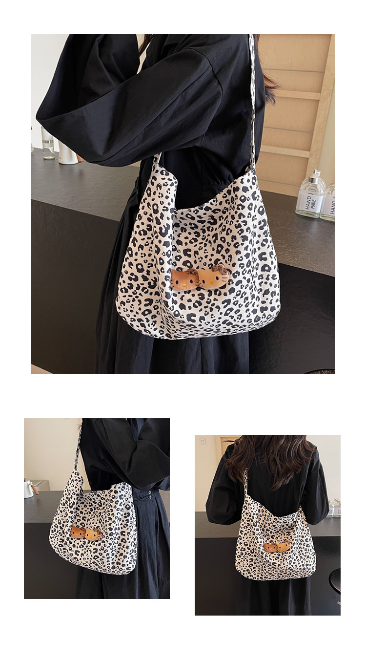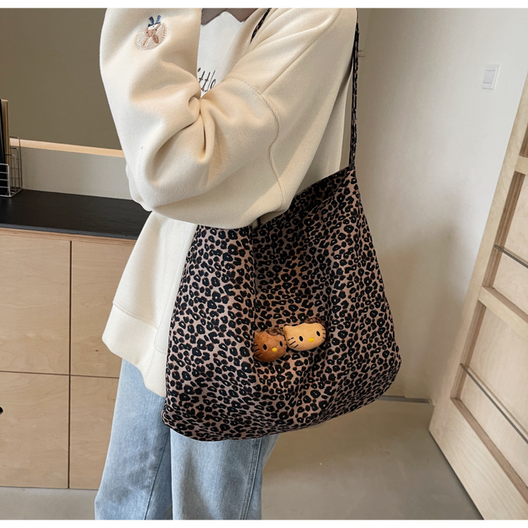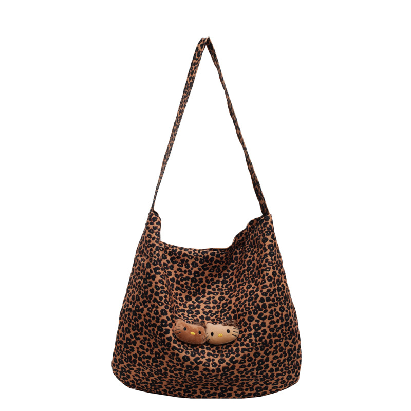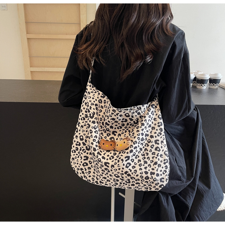 小众ins风豹纹kitty斜挎包女新款大容量轻便百搭帆布袋学生上课包