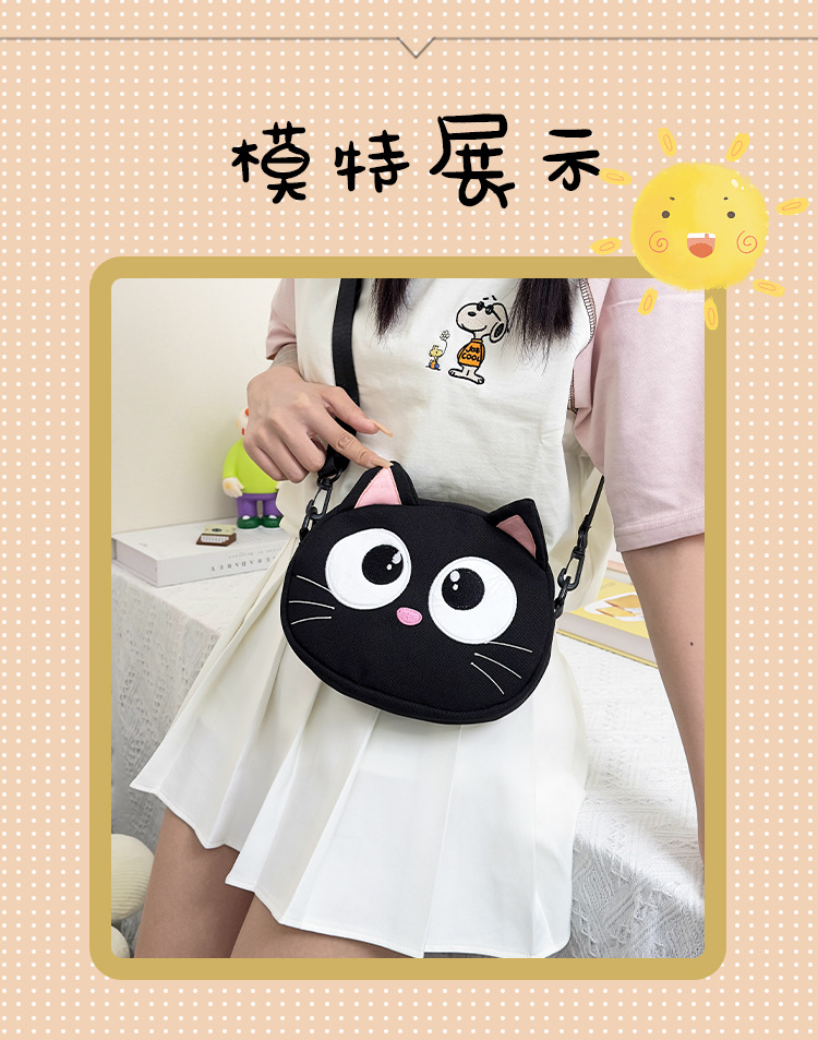 韩版可爱猫咪帆布包包女新款卡通刺绣零钱包学生逛街手机包斜跨包