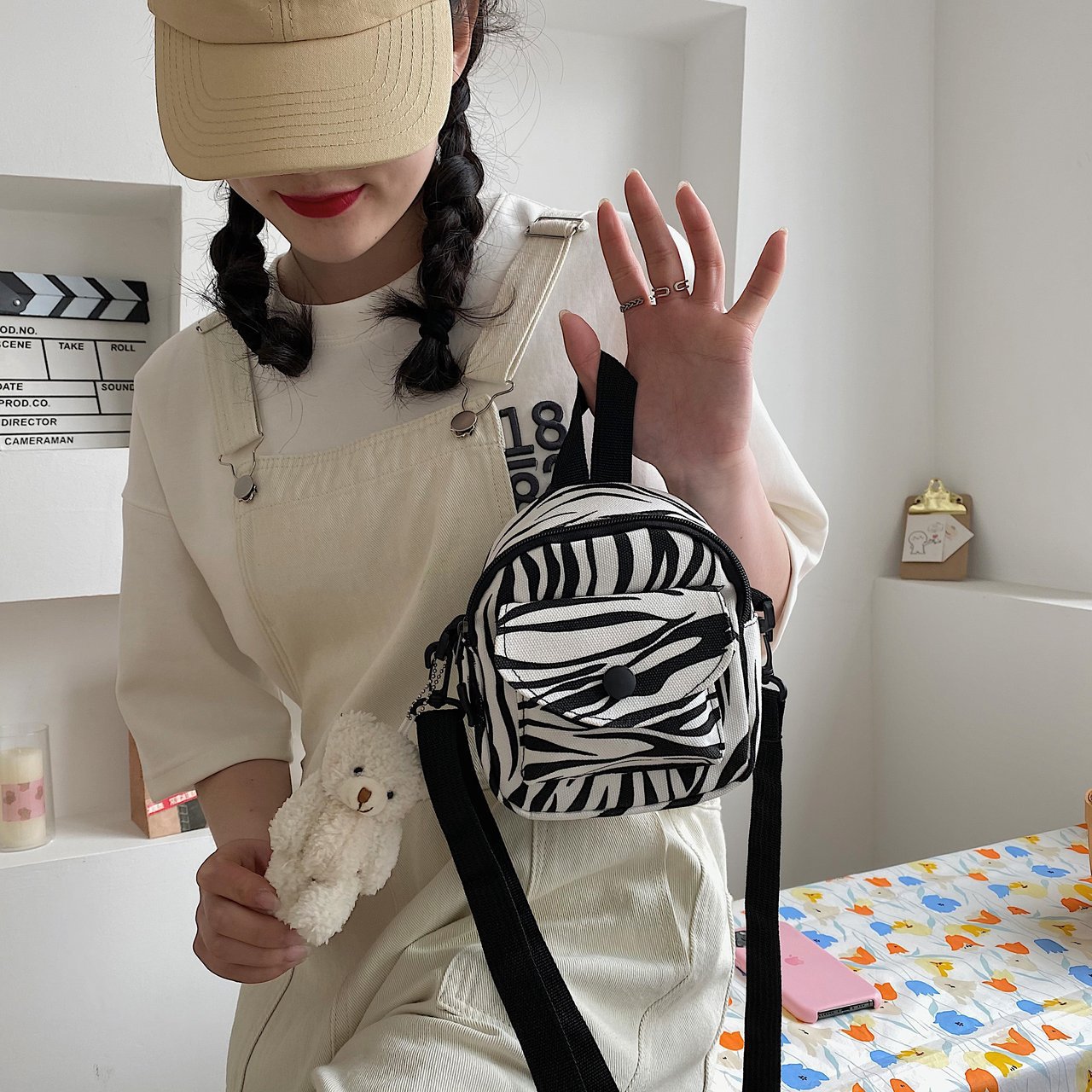 可爱奶牛纹小包包女新款少女学生手机包日系小清新斜挎帆布包
