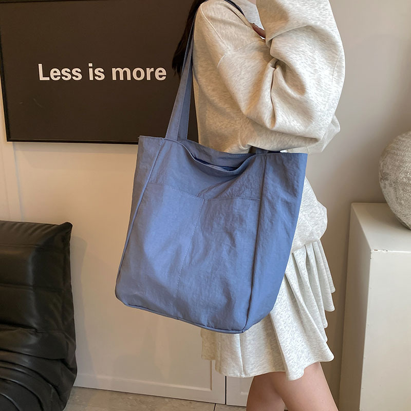 日系防水尼龙休闲单肩布包女小众设计感帆布大容量通勤托特大包包