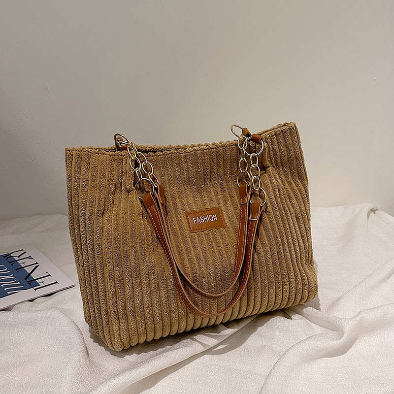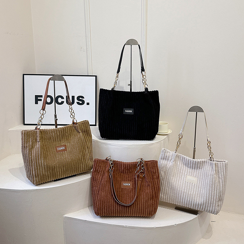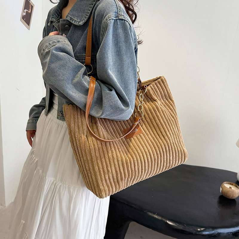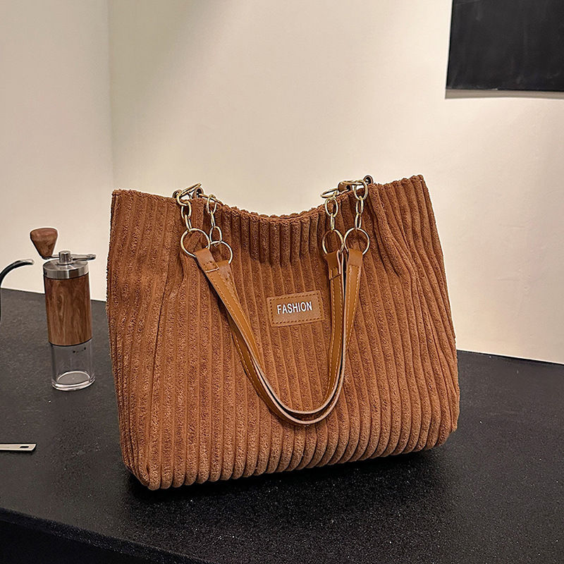 爆款大容量条绒链条腋下托特包女包新款秋季超火潮单肩通勤包