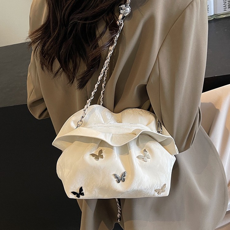 超火小众褶皱云朵包包女士新款潮百搭链条单肩斜挎包小包