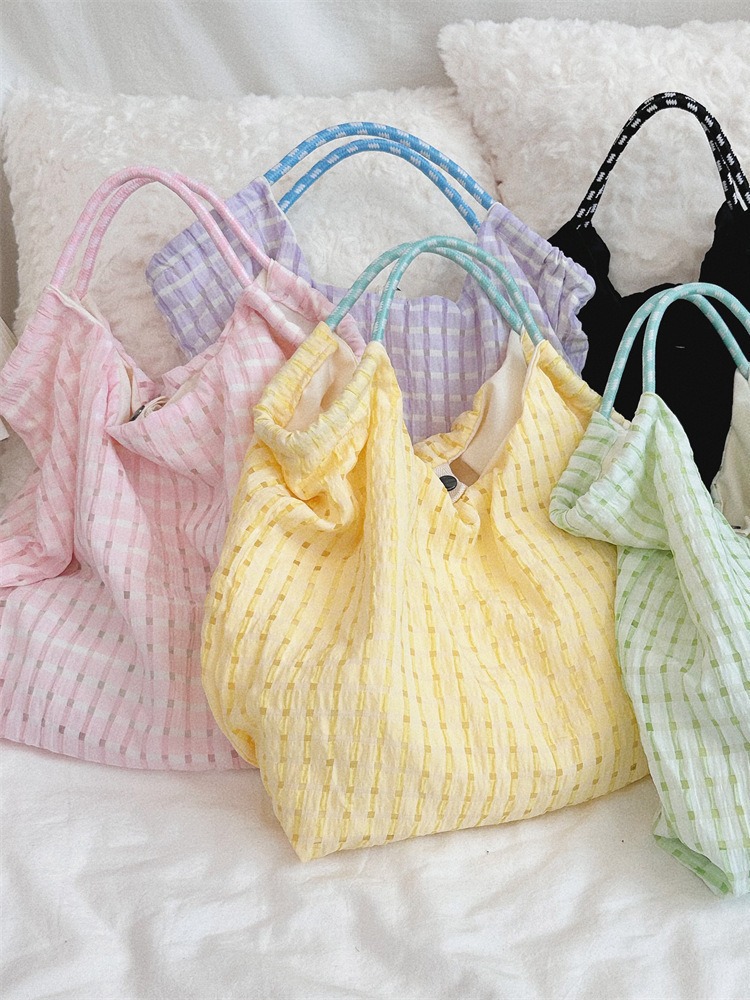 镂空格子布袋大容量通勤单肩包夏天薄款手提沙滩包