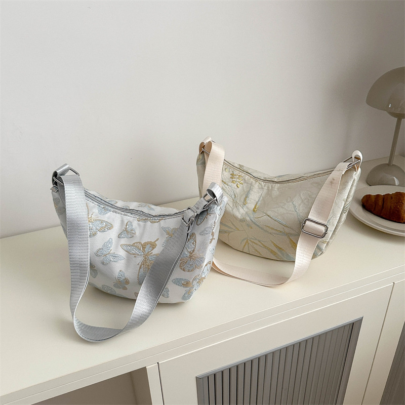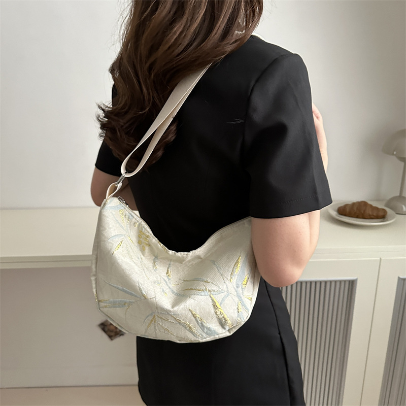 新中式国风提花帆布饺子包女流行百搭单肩大包新款通勤腋下包
