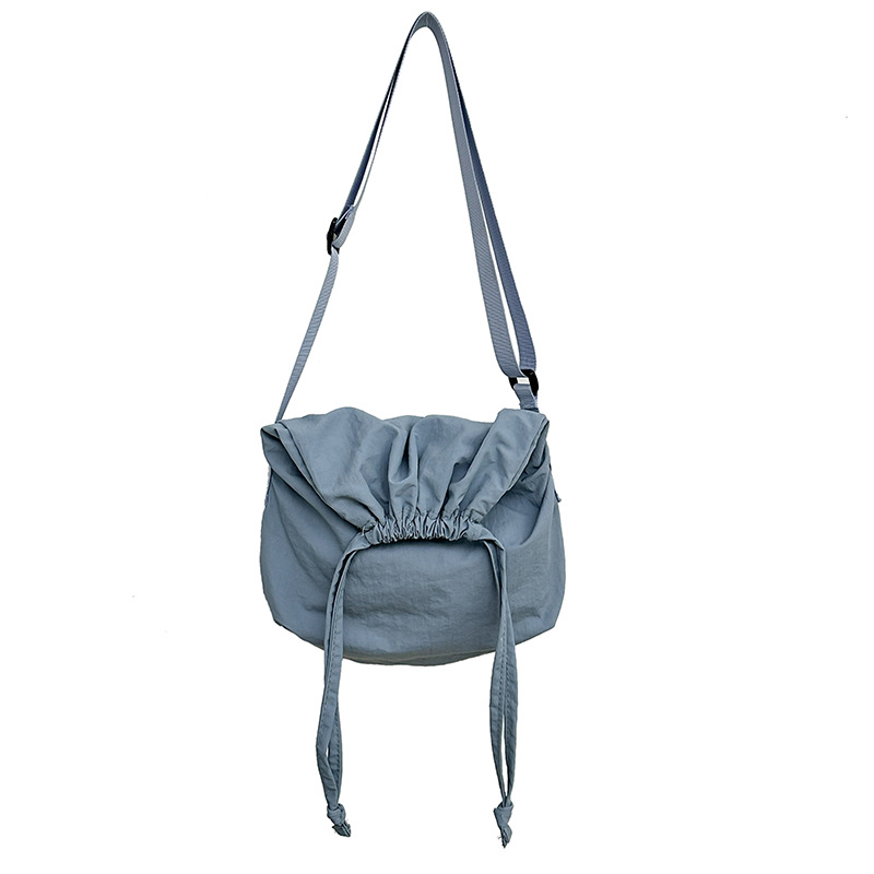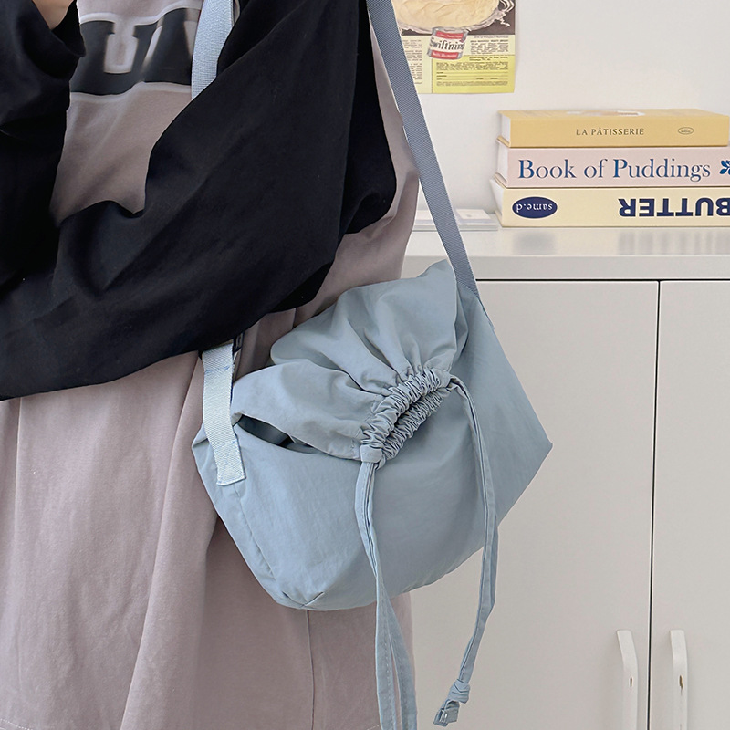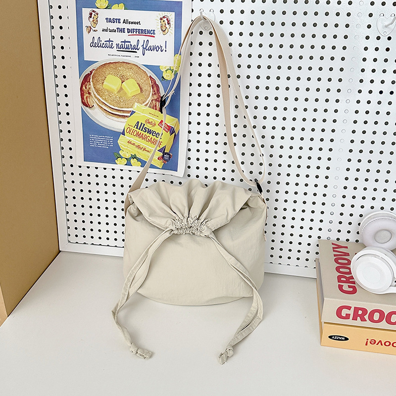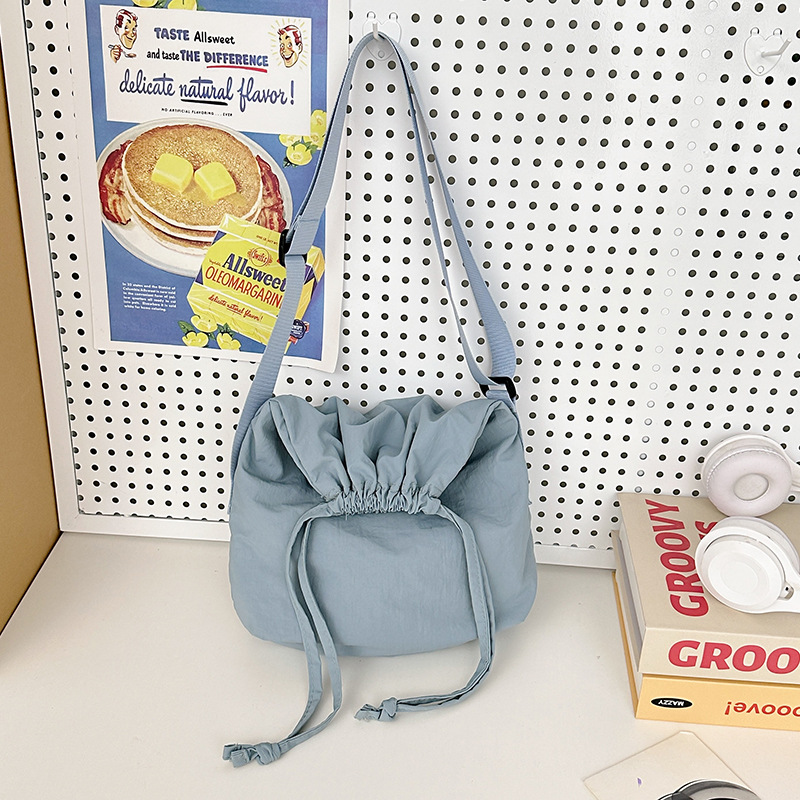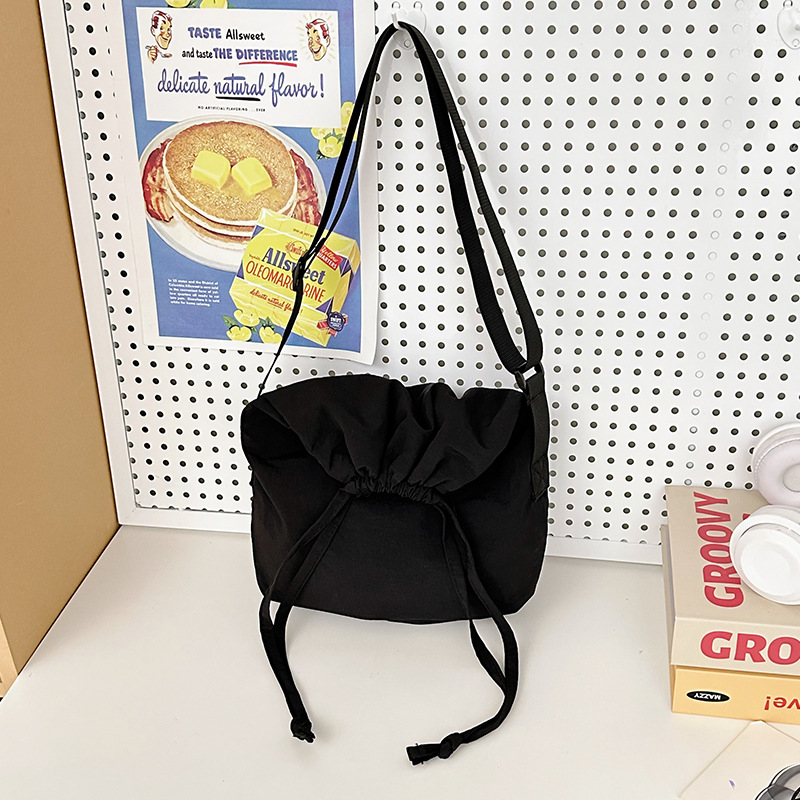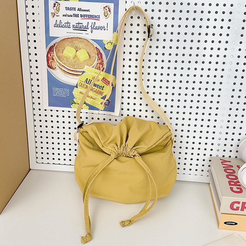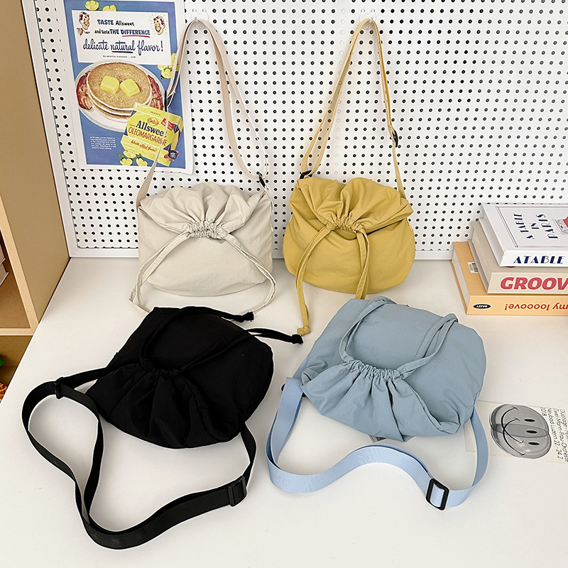 U家同款纯色抽绳单肩斜垮包新款网红休闲尼龙布包托特包