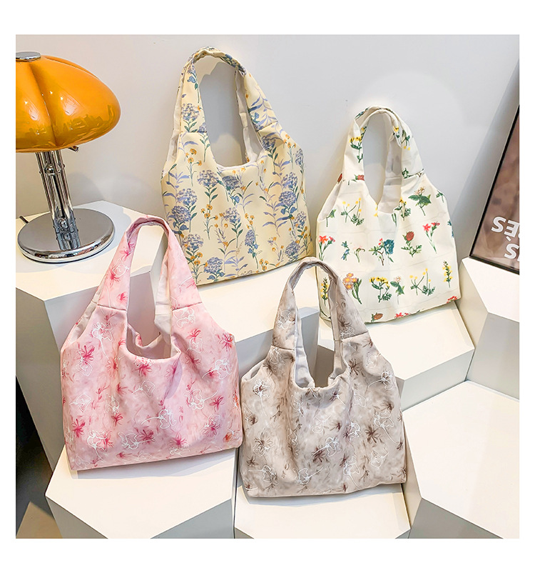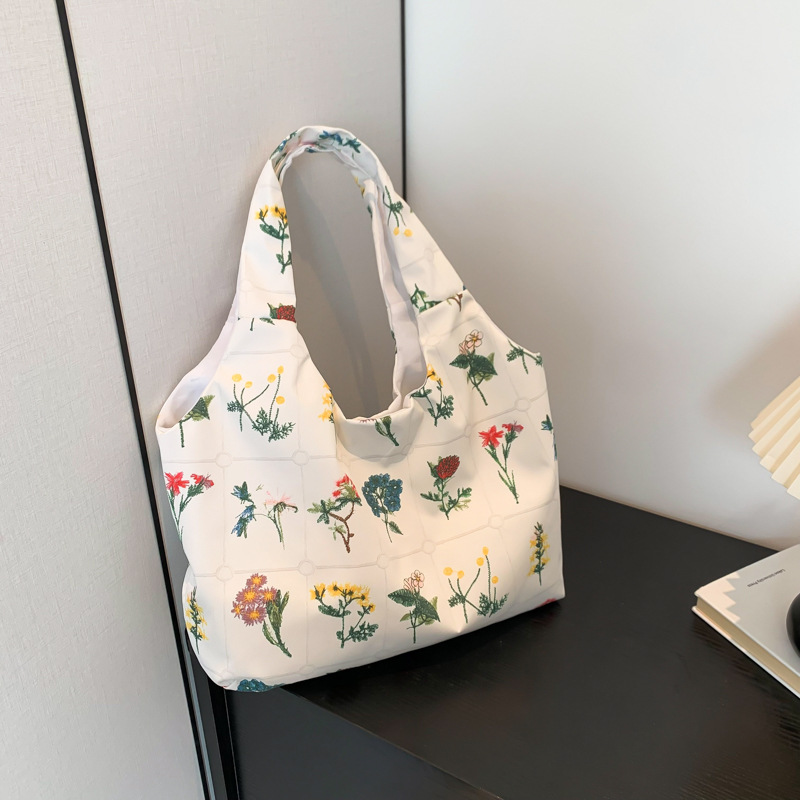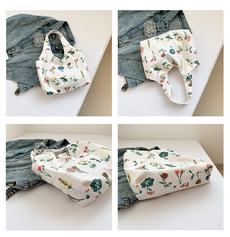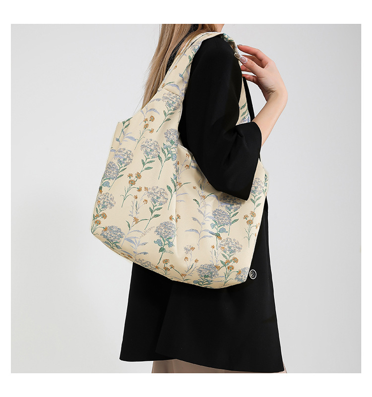 大容量碎花帆布包包女秋季新款小众单肩托特包斜挎通勤妈咪包