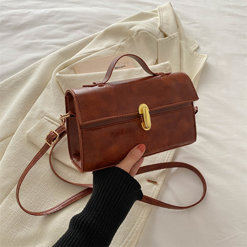 高级质感复古小包包 秋冬新款斜挎包女流行百搭单肩手提小方