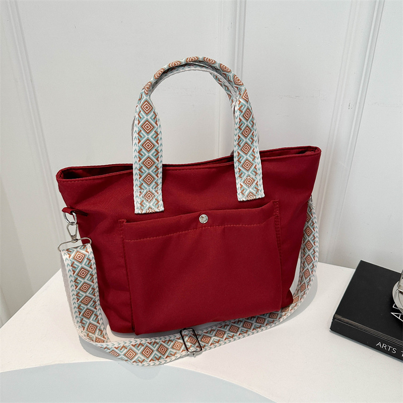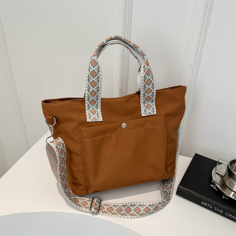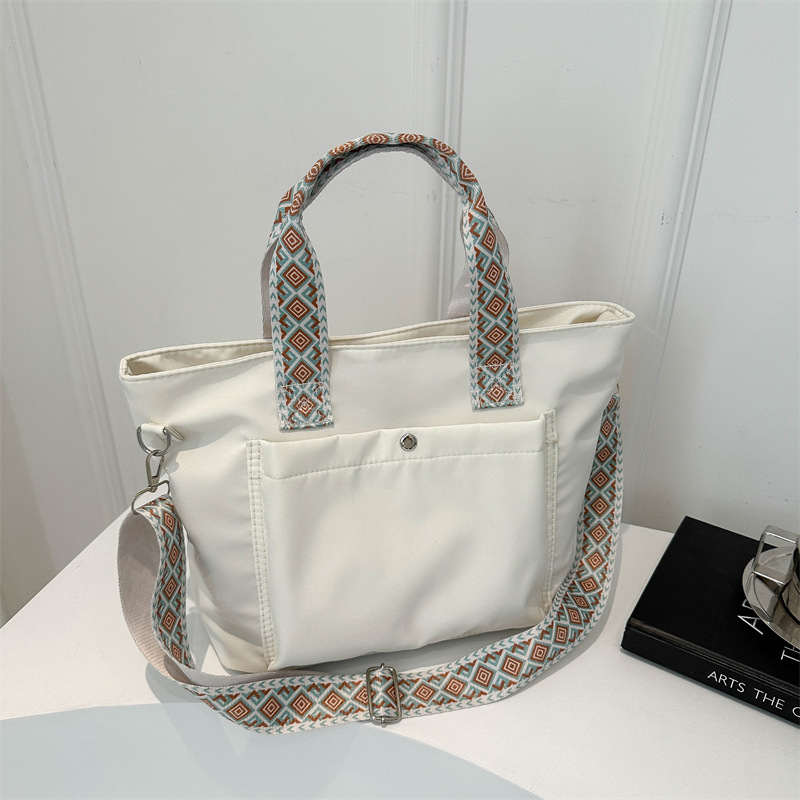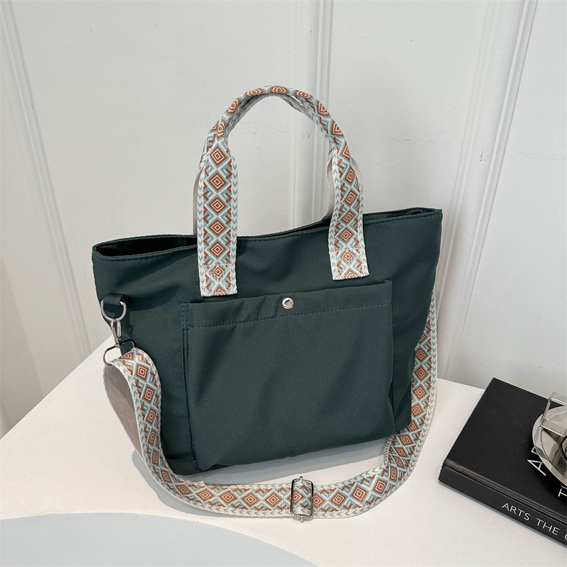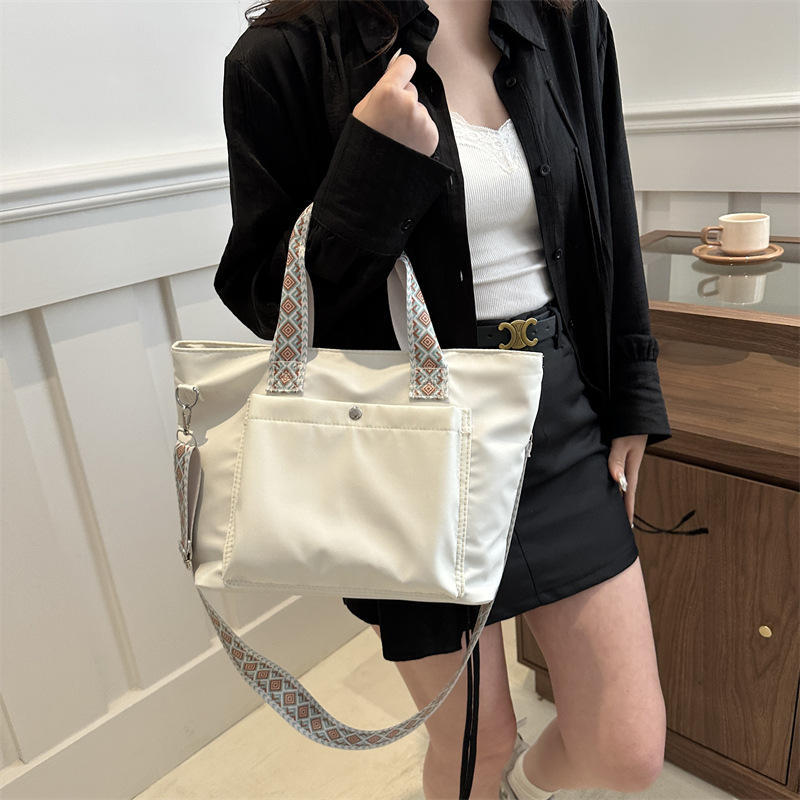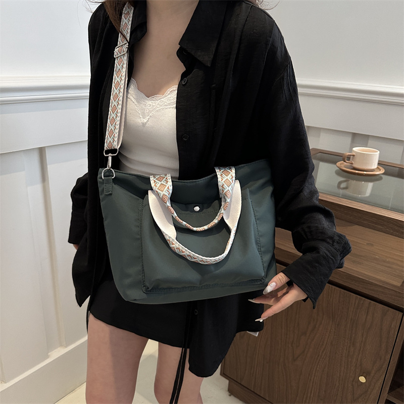 帆布托特包新款时尚防水宽肩带通勤包学生上课包大容量妈咪包