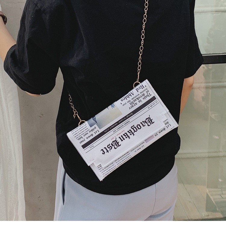 新款欧美时尚创意恶搞趣味英文字母报纸包网红信封包pu斜挎包