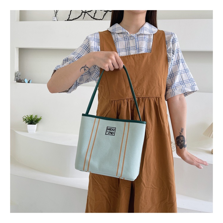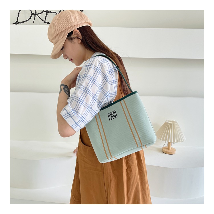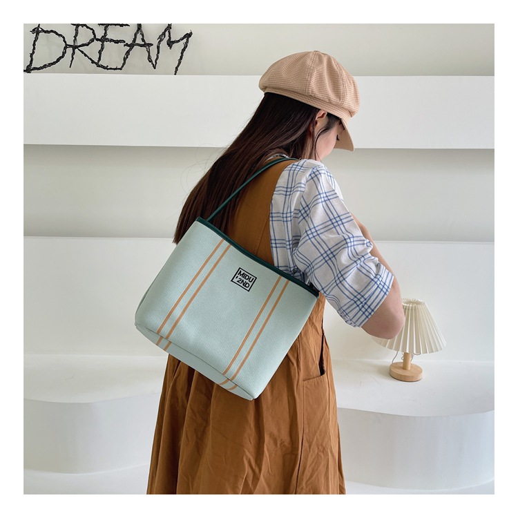 新款小众设计刺绣帆布包女通勤百搭单肩腋下包超火手提水桶包