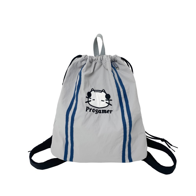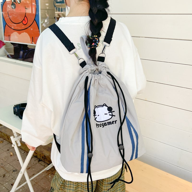 抽绳薄袋双肩包原创小众耳机猫大容量背包日韩ins超火大学生书包