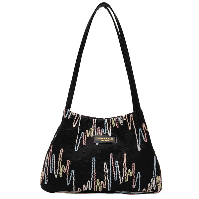 休闲大容量包包女新款简约百搭单肩腋下包古风彩色条纹水桶包