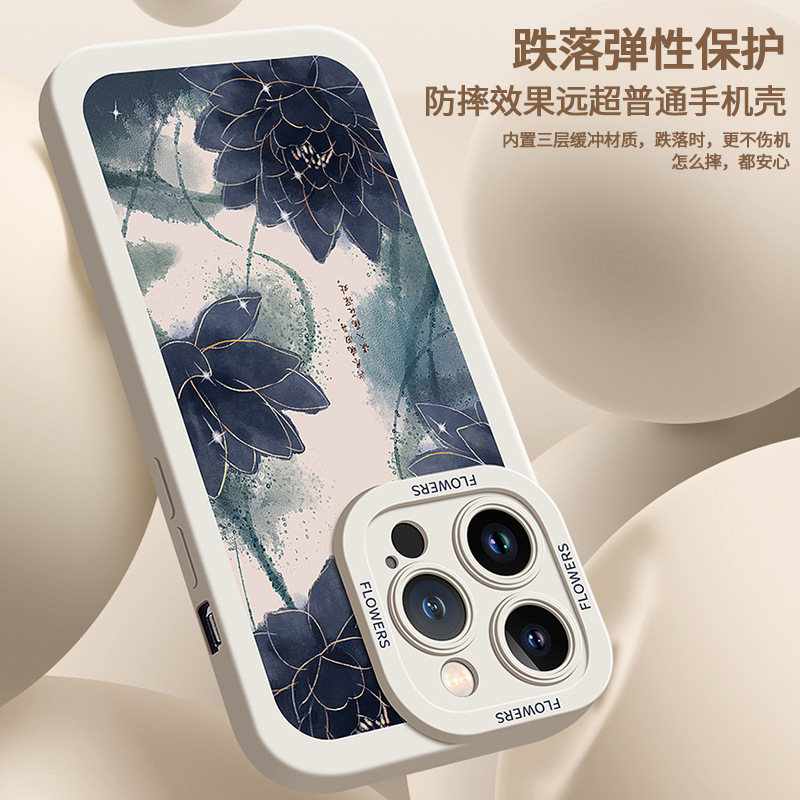 适用于苹果14promax手机壳新款落花紫iPhone13Pro液态硅胶12pm