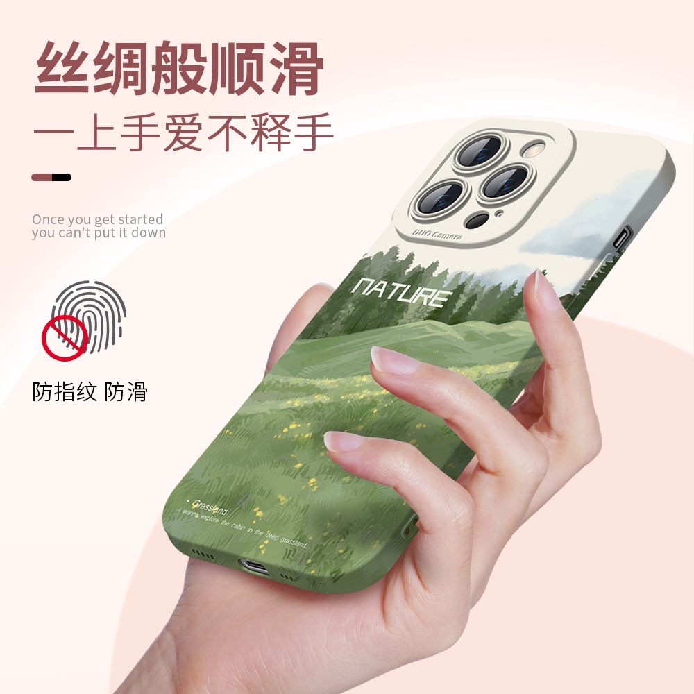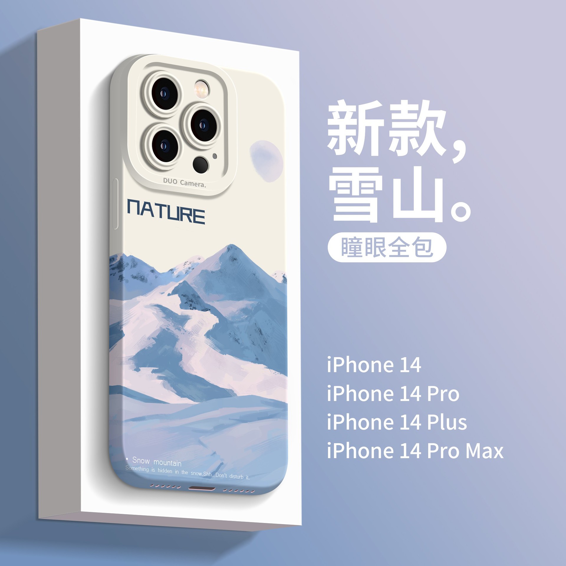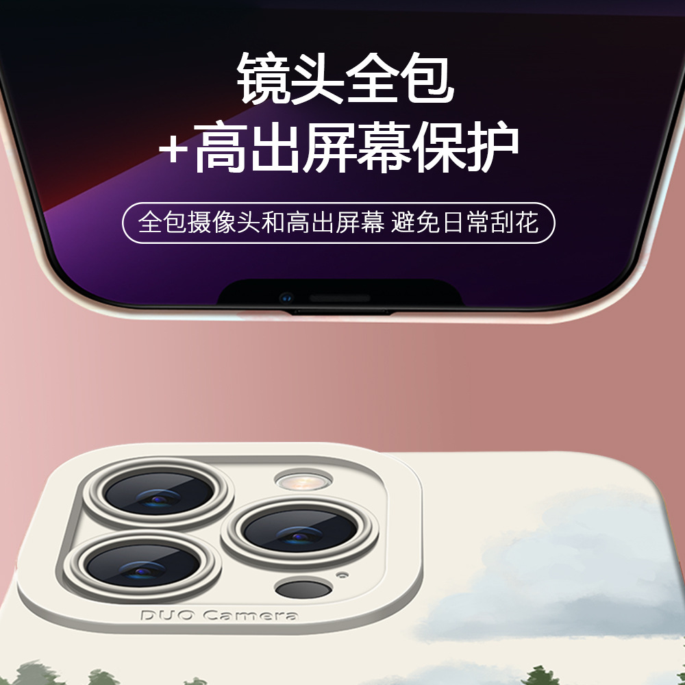 适用男款苹果14手机壳新款iphone14pro硅胶全包13自然山林水墨13p