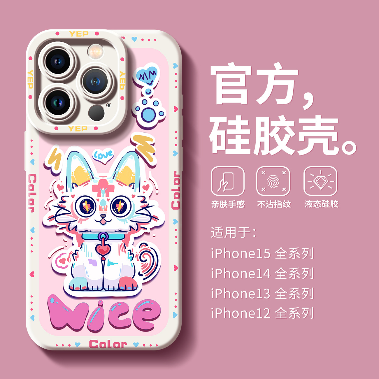 适用于苹果15手机壳情侣猫14Promax硅胶mate60卡通小米14防摔Reno