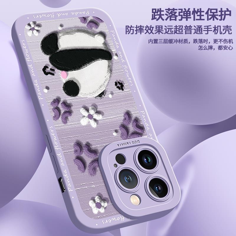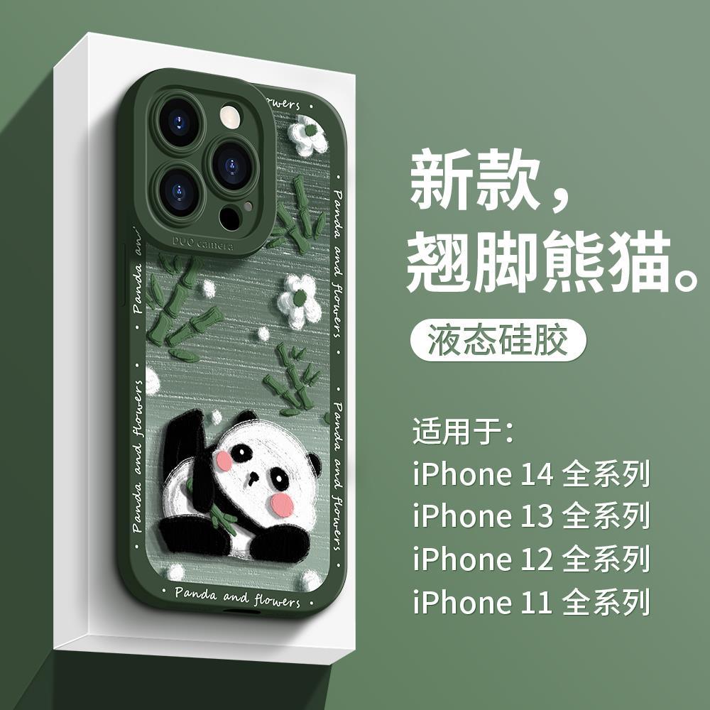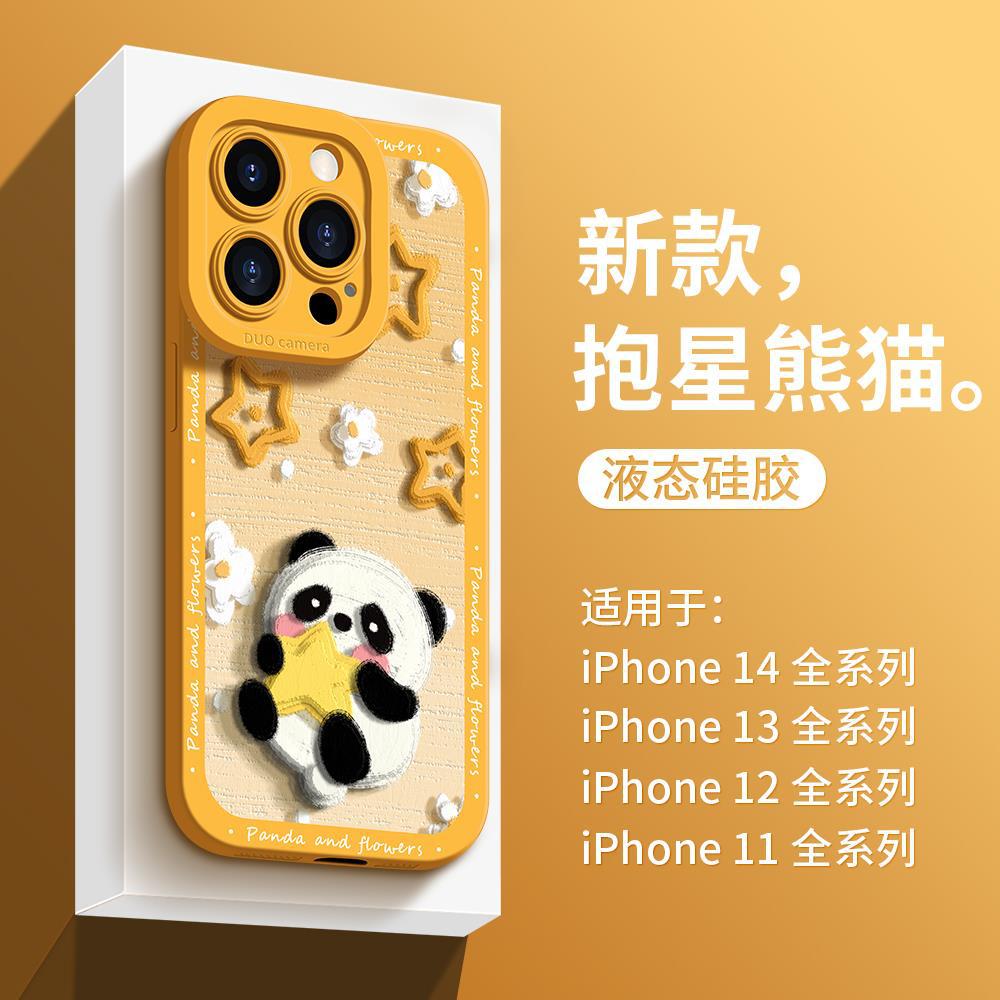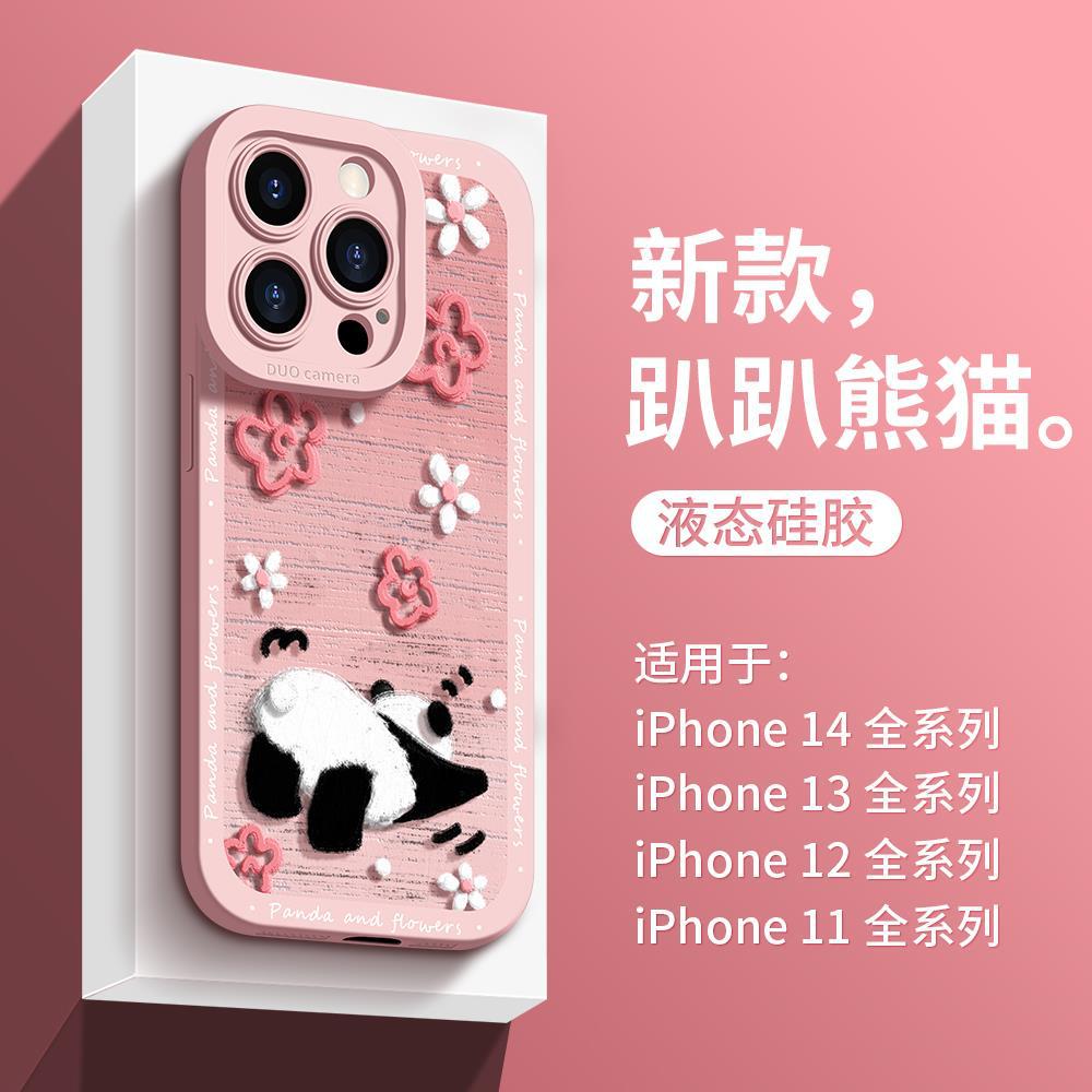 适用于苹果14手机壳比心熊猫xsmax超薄硅胶xr全包新款13pro潮牌iP