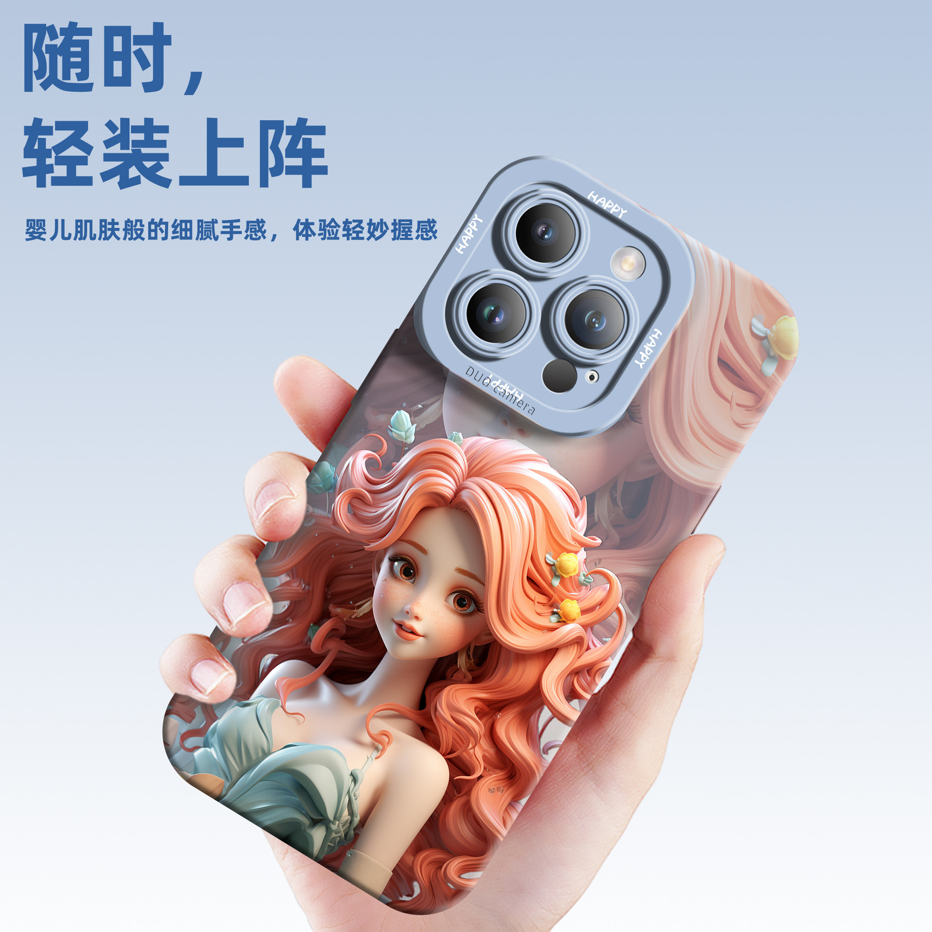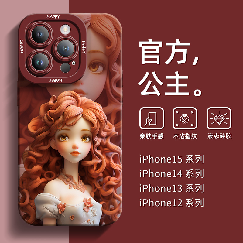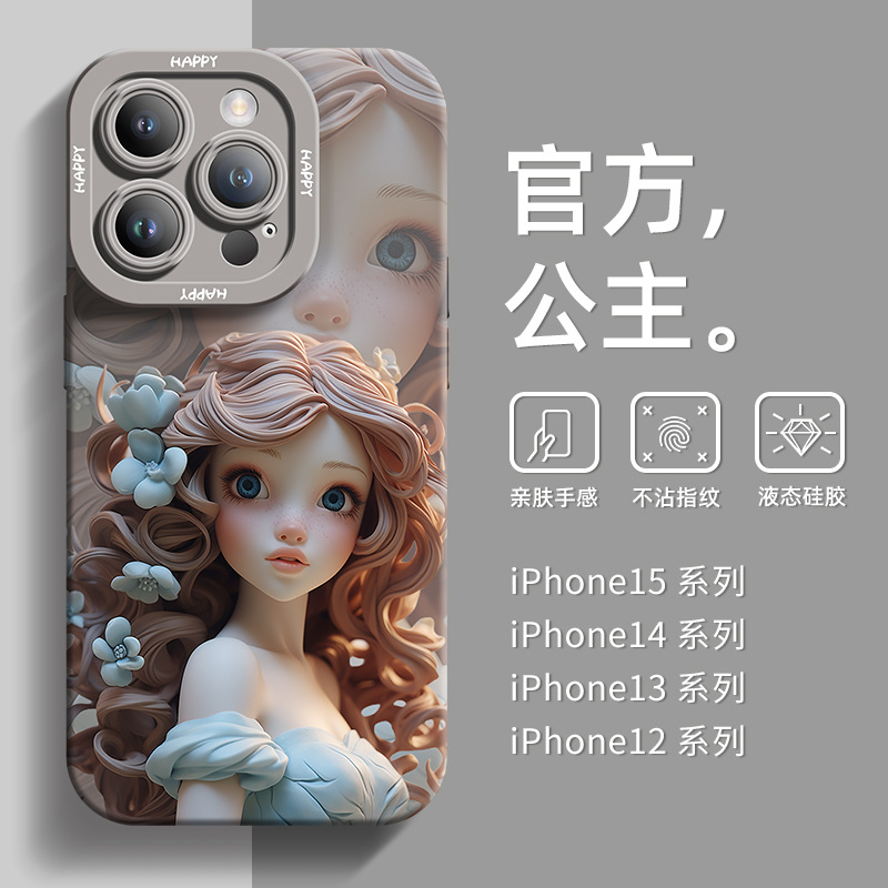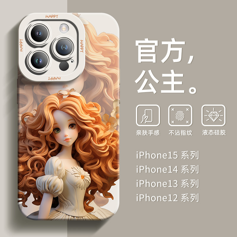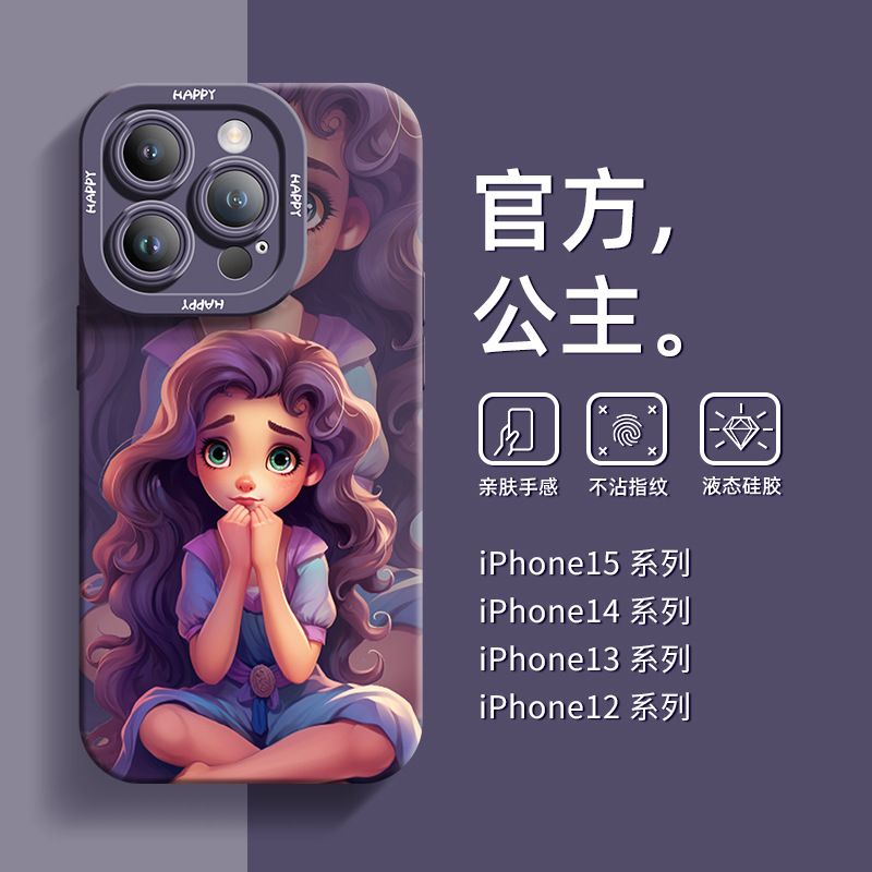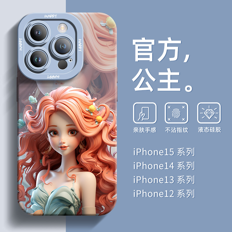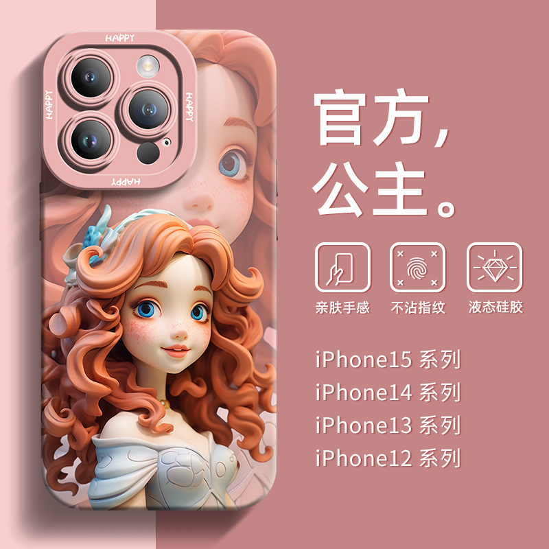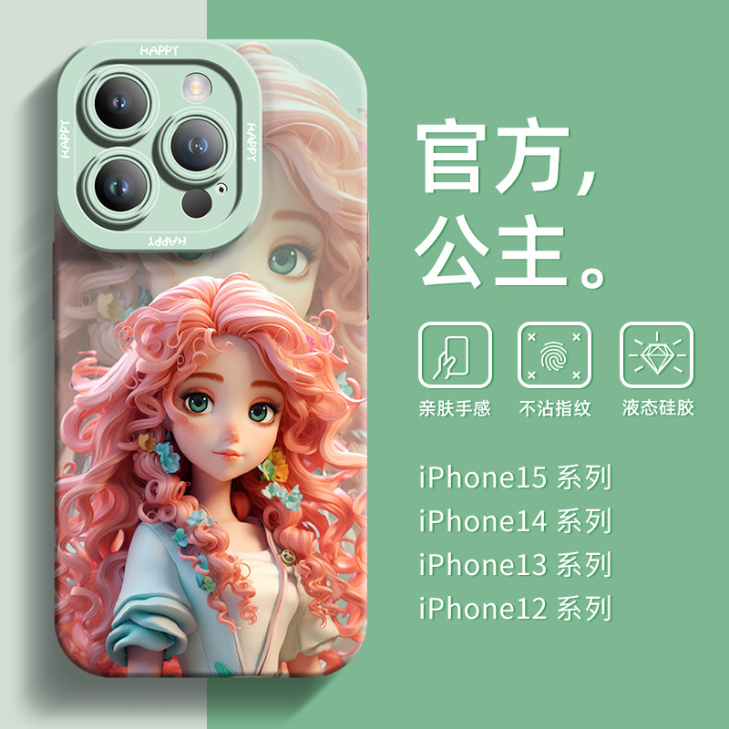 适用苹果15pro手机壳新款iPhone15promax可爱百变公主14液态全包