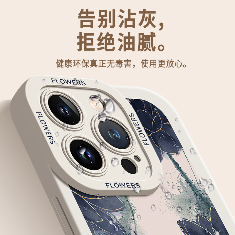 适用于苹果14promax手机壳新款落花紫iPhone13Pro液态硅胶12pm