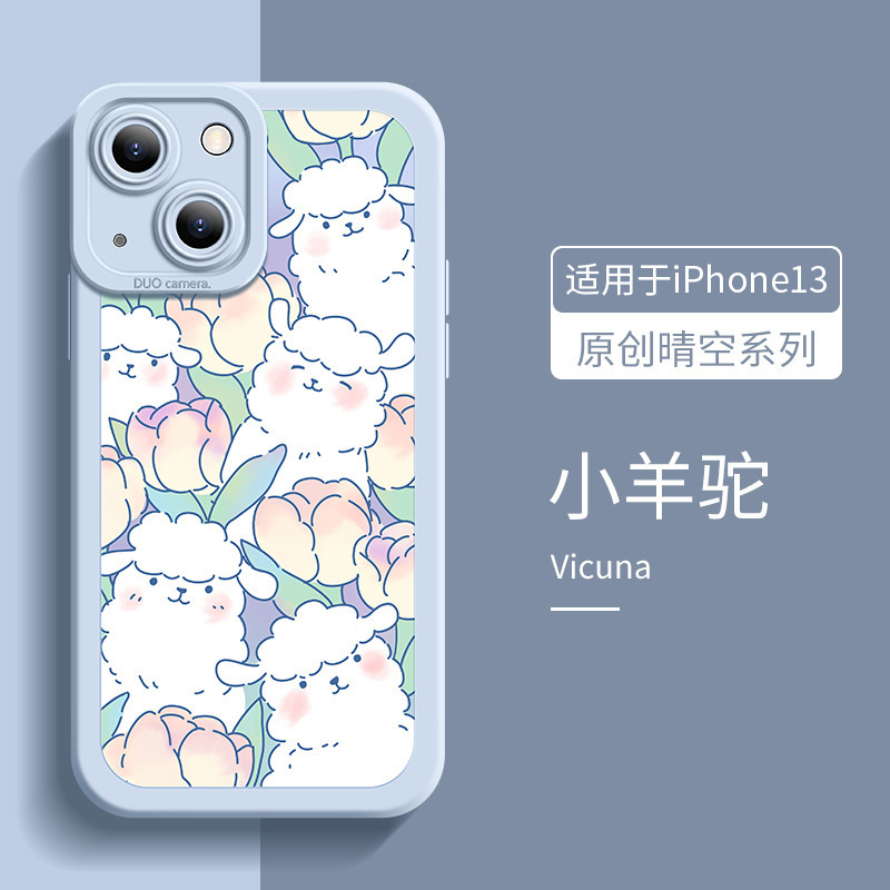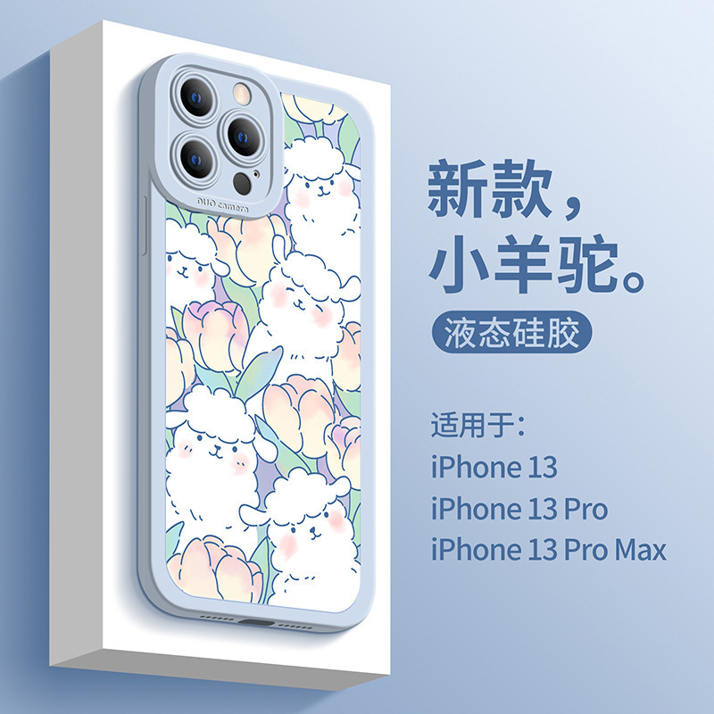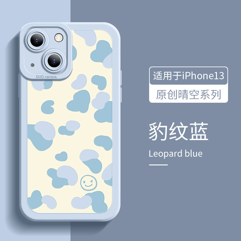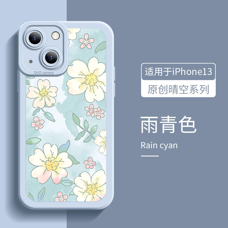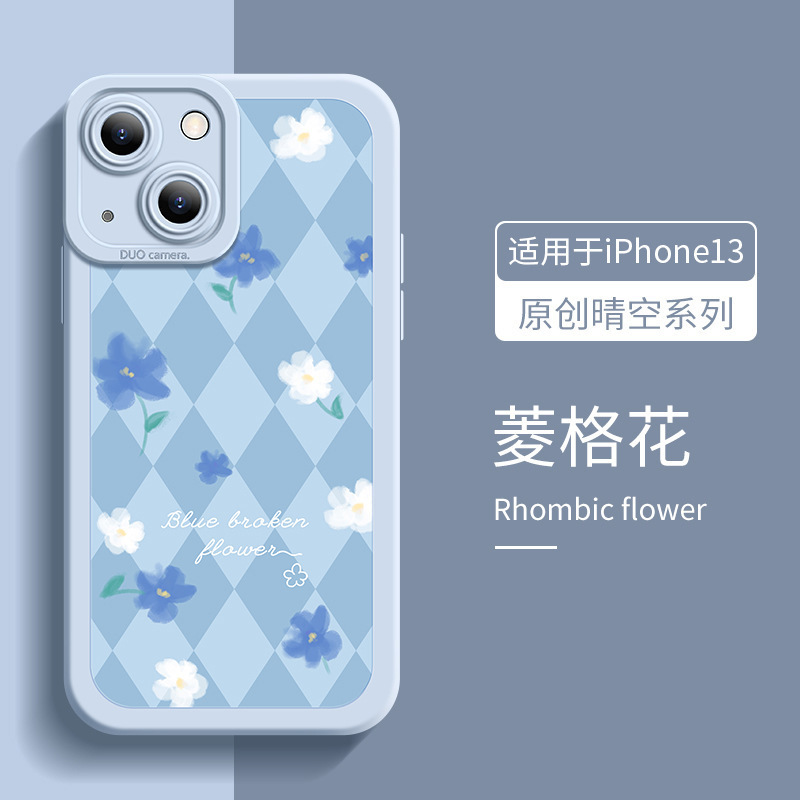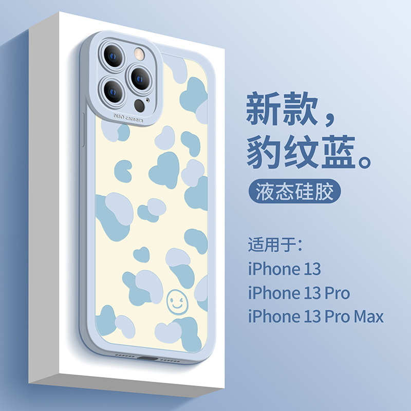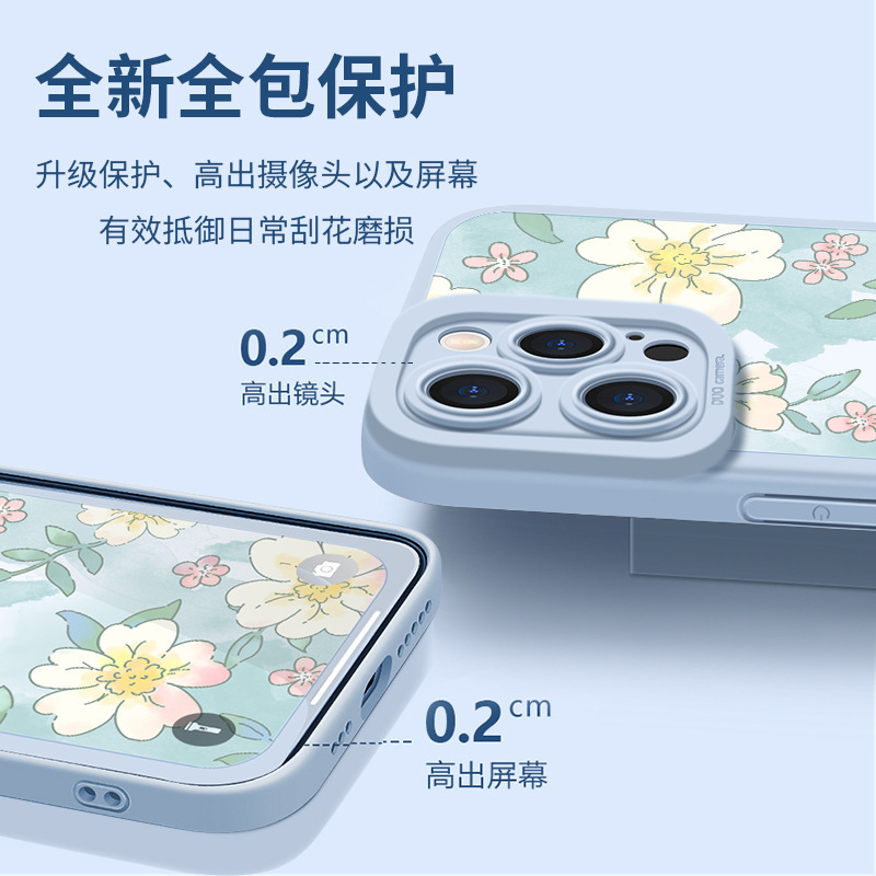 适用于墨蓝花新款创意苹果14手机壳液态8plus硅胶瞳眼iPhone13Pro