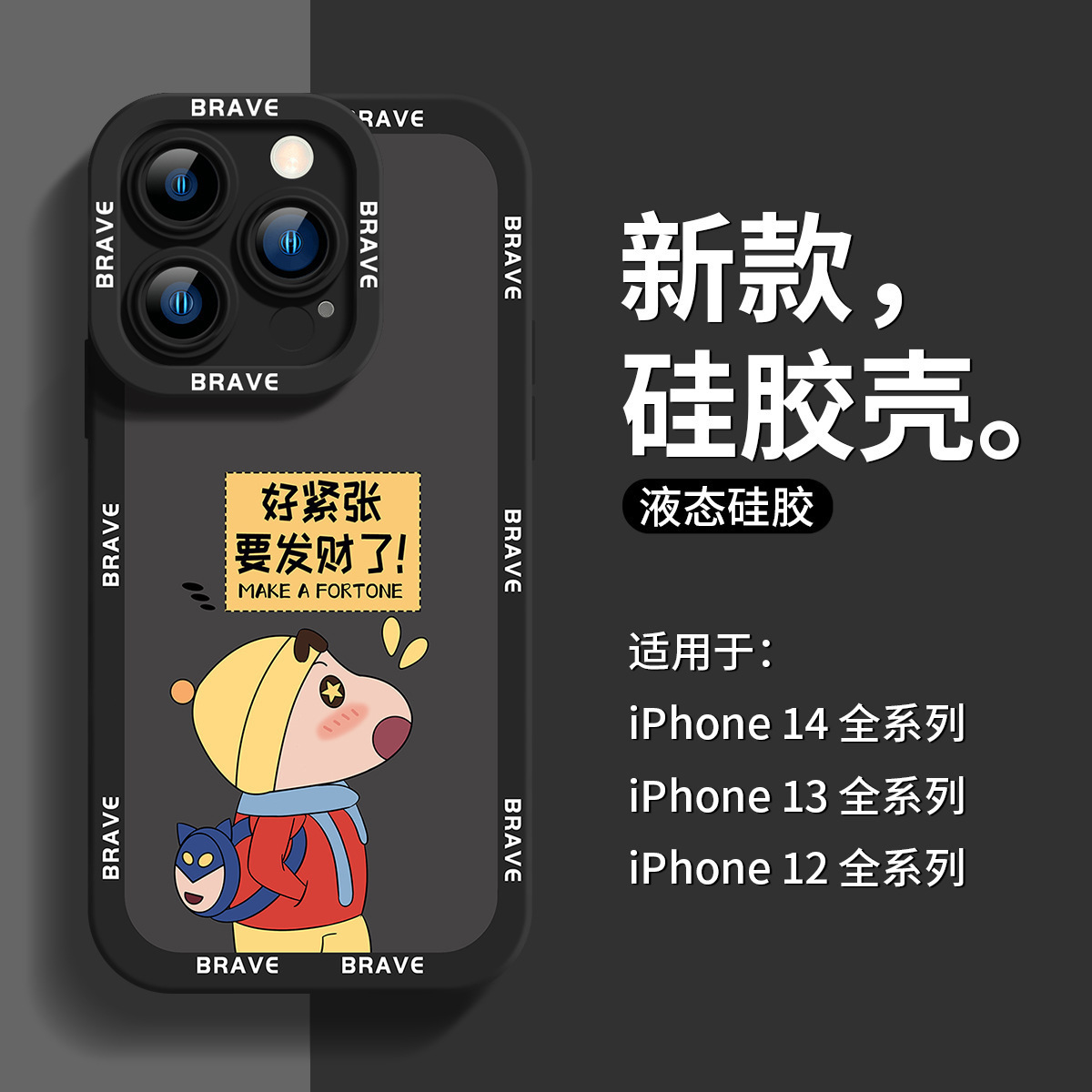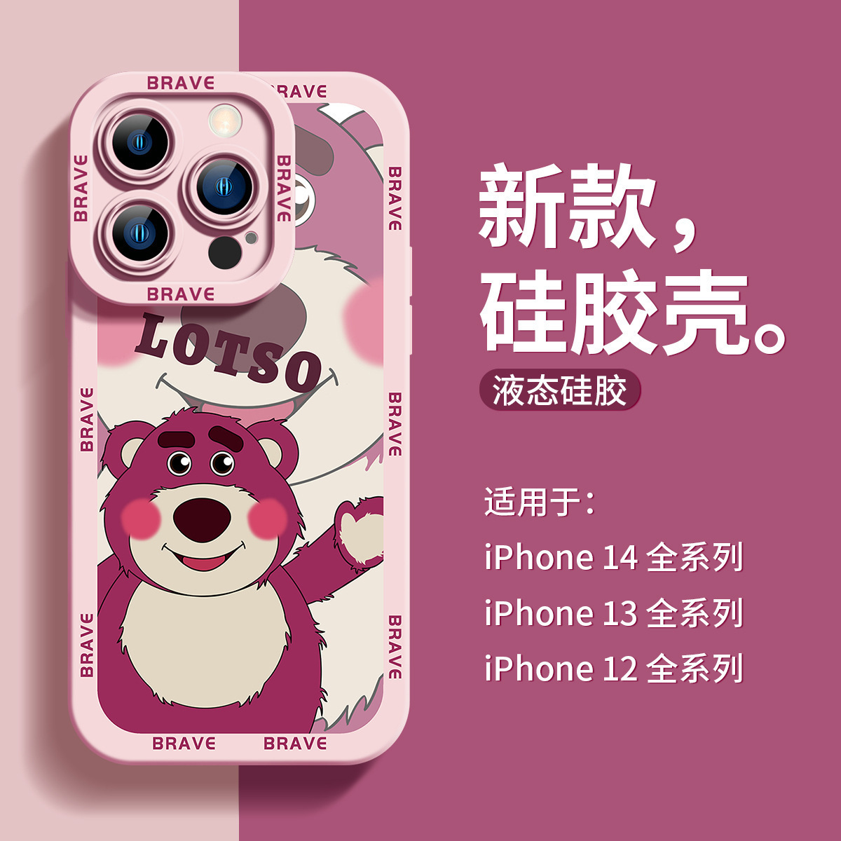 液态硅胶草莓熊苹果12手机壳iPhone11/13pro软硅胶防摔全包ip14pr