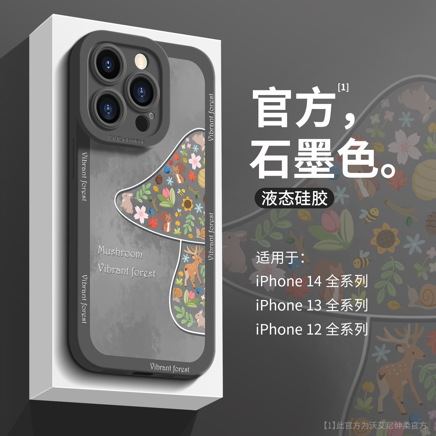 适用经典石墨色苹果14手机壳超薄14pro五彩蘑菇iphone13液态硅胶