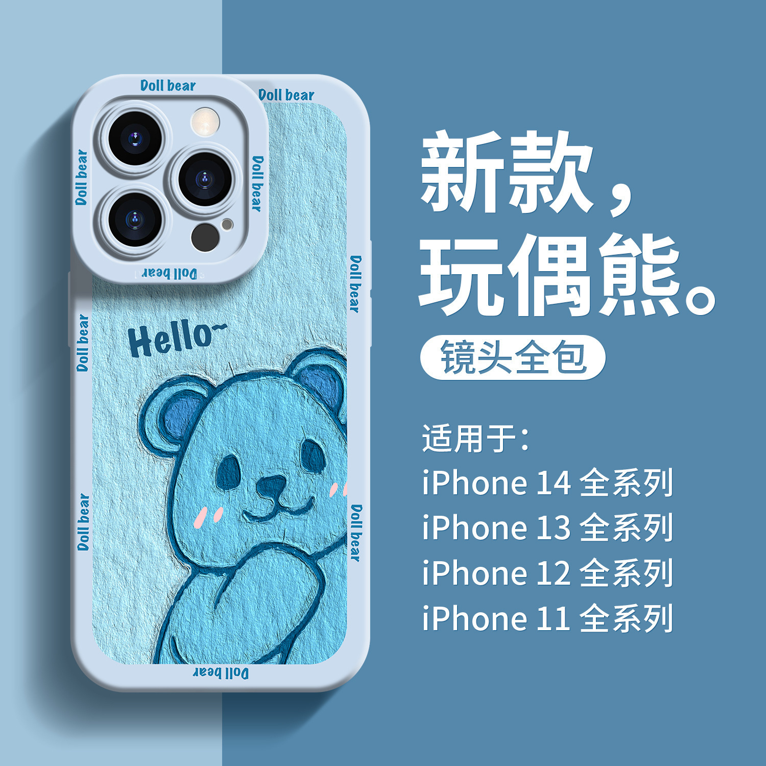 趣味玩偶熊适用于苹果13promax手机壳原创ins风潮牌x散热硅胶XR亲