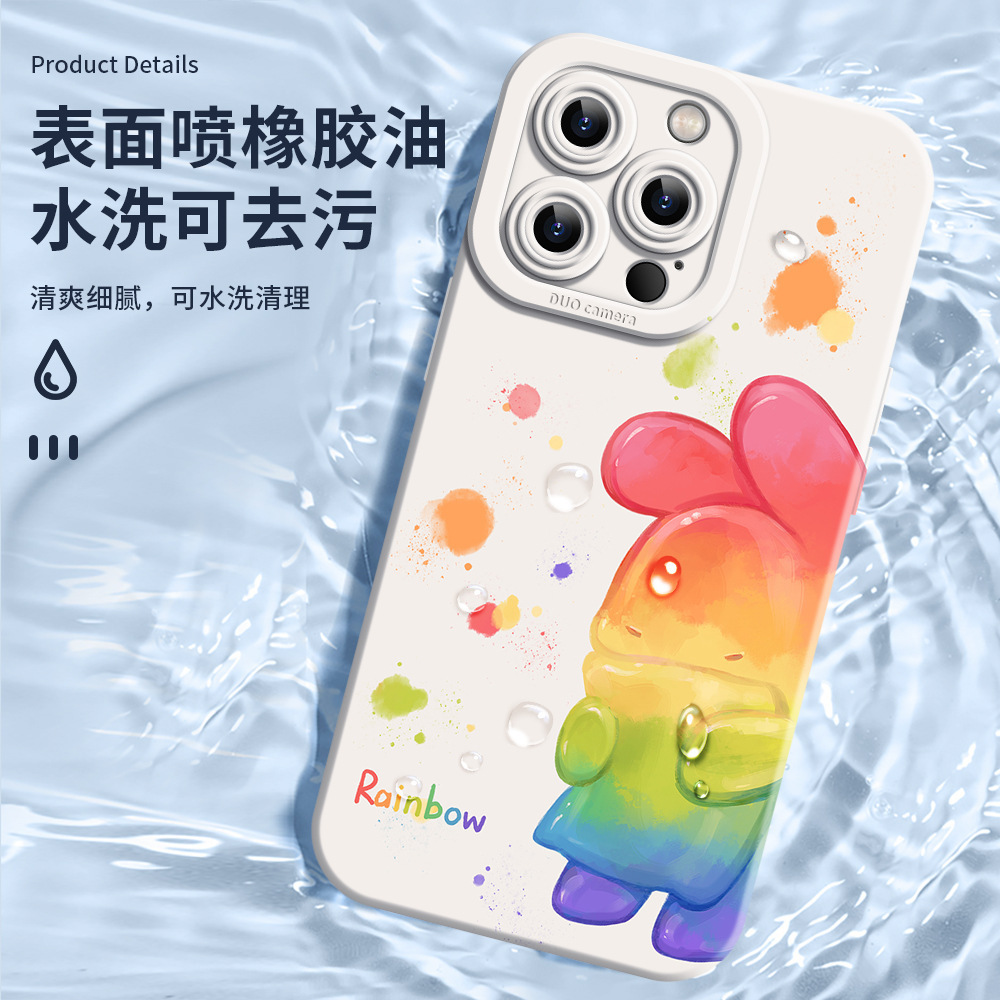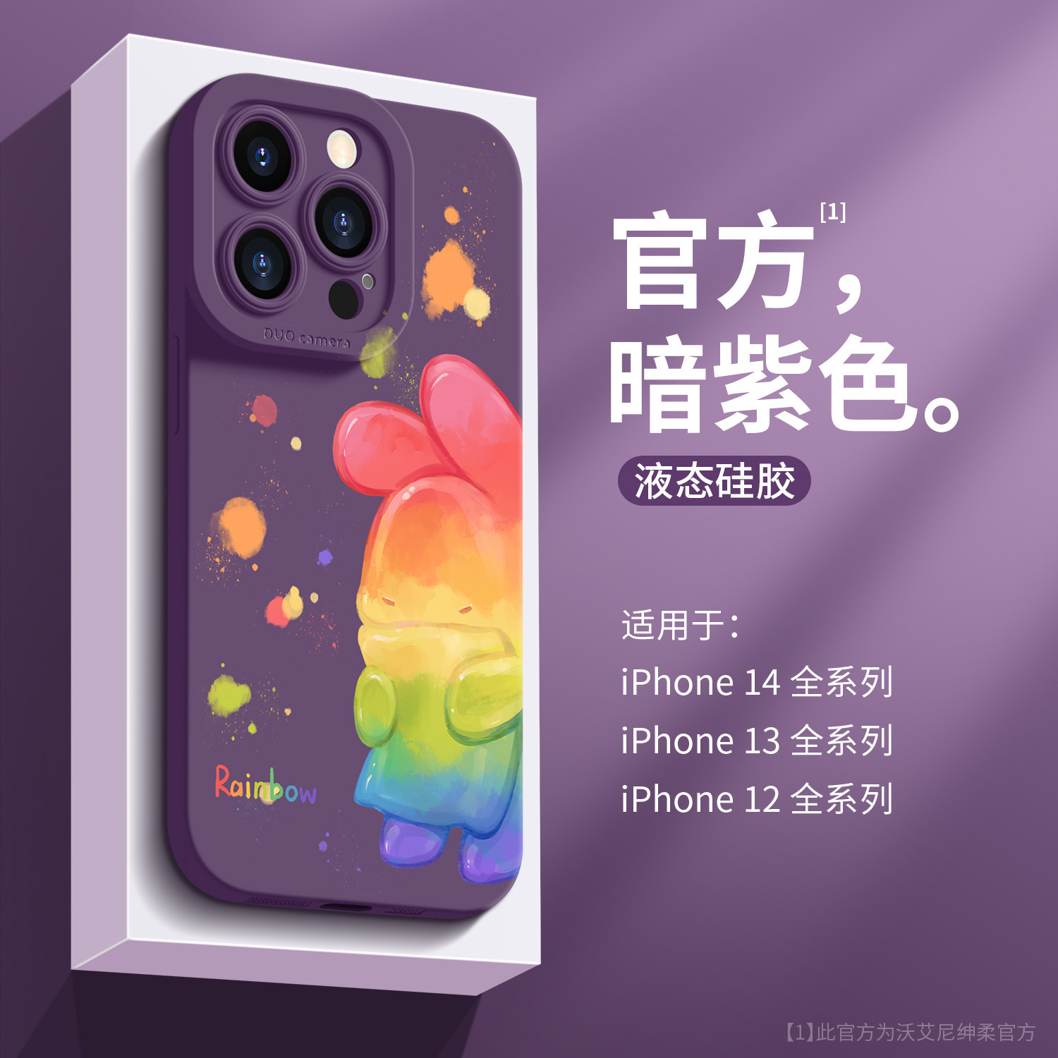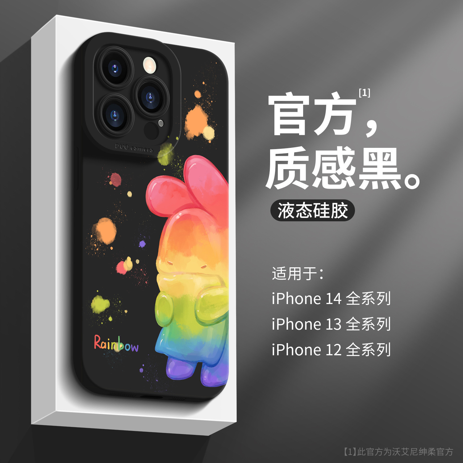 适用于苹果14手机壳女新款彩虹兔iPhone13promax镜头全包防摔12pr