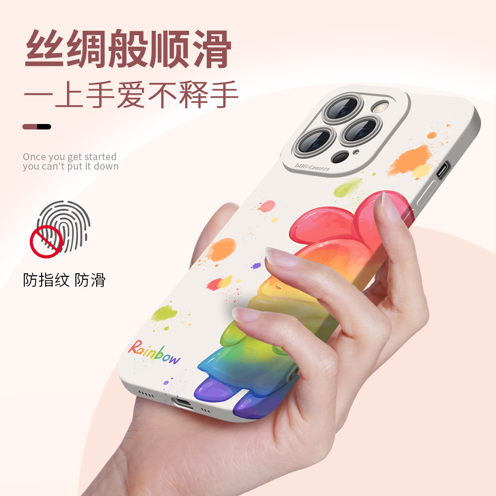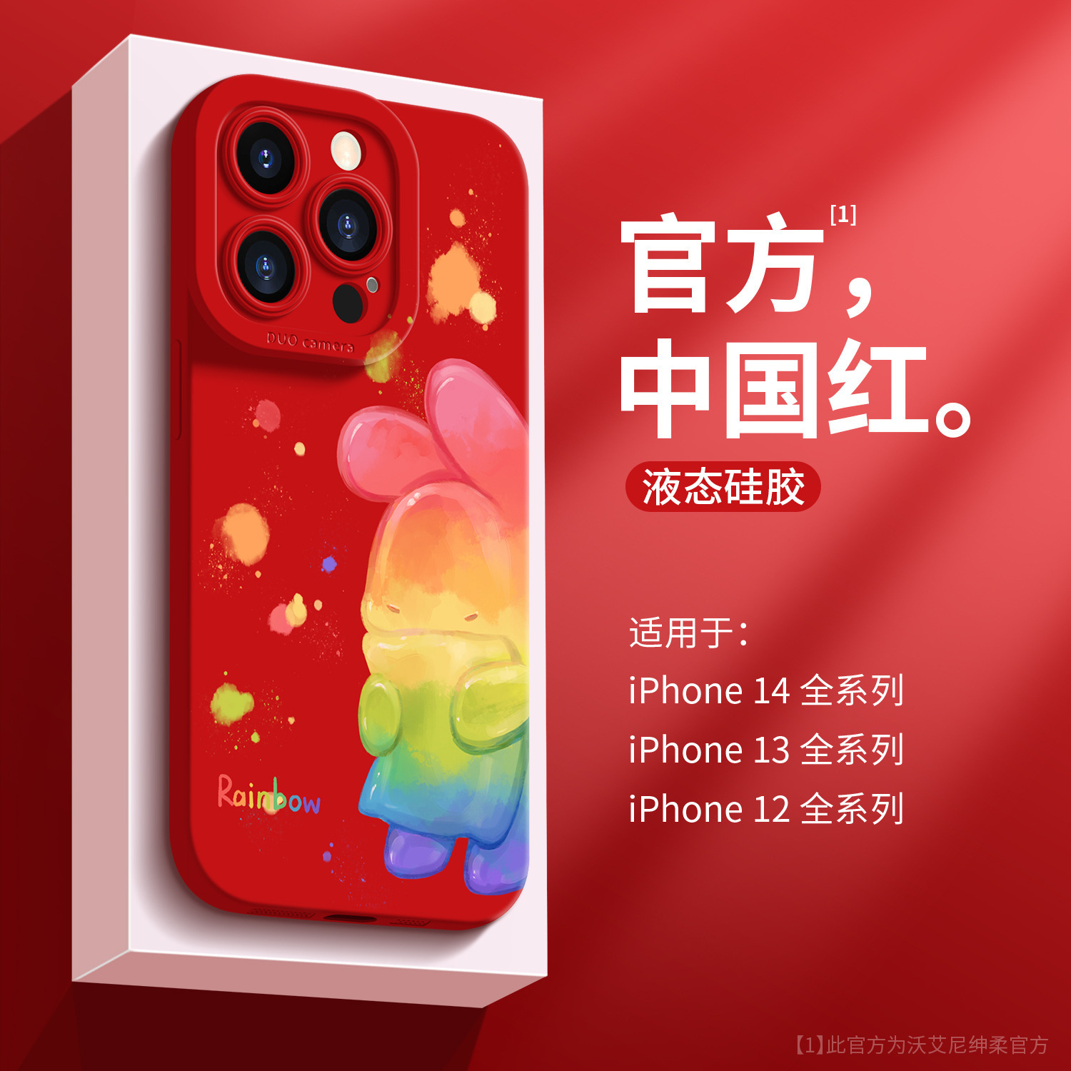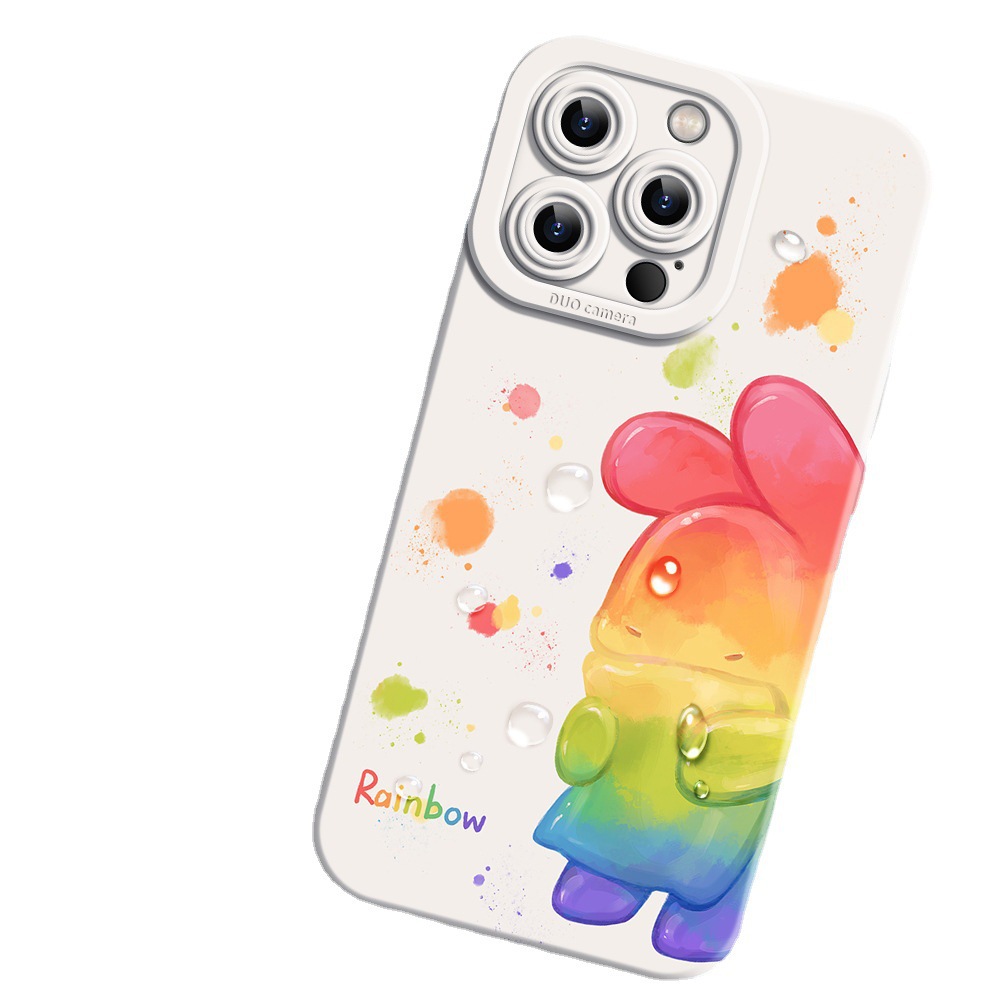 适用于苹果14手机壳女新款彩虹兔iPhone13promax镜头全包防摔12pr