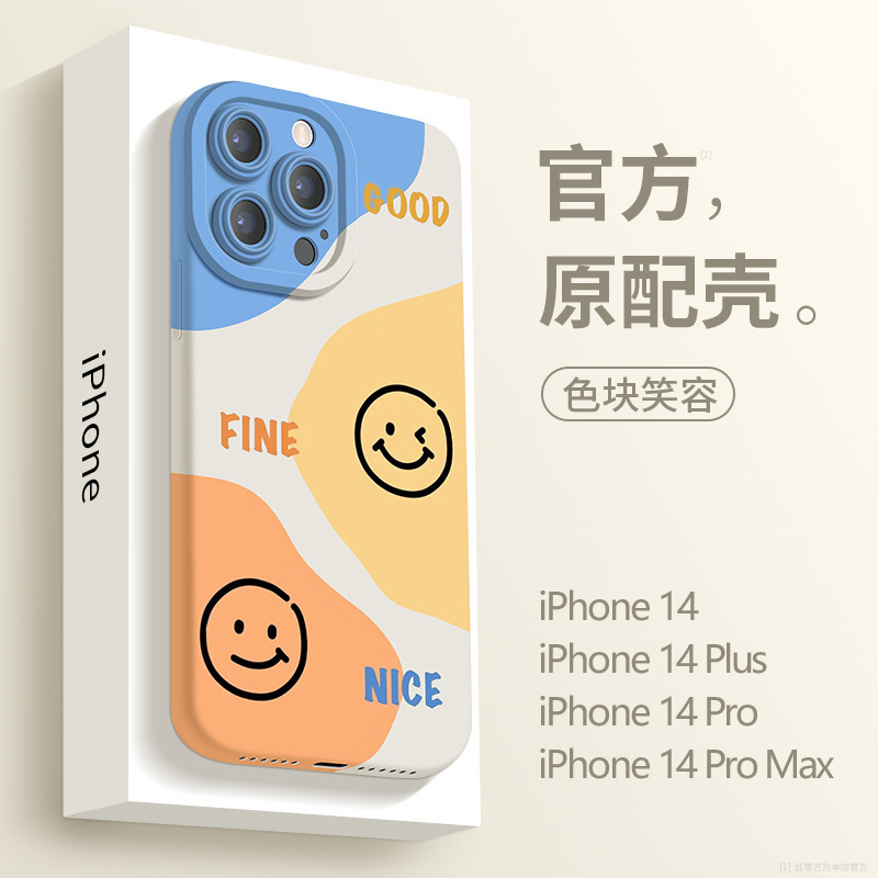 适用于苹果14手机壳色块笑容女款iPhone14pro硅胶新款ins风12软壳