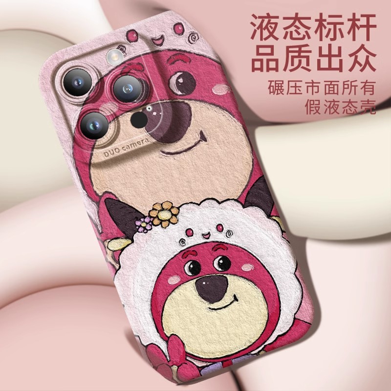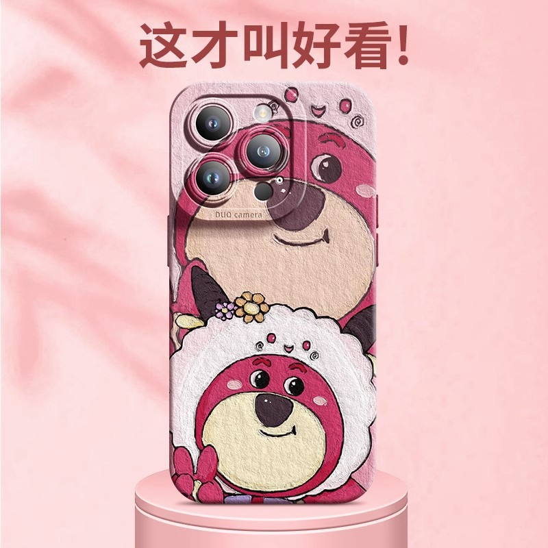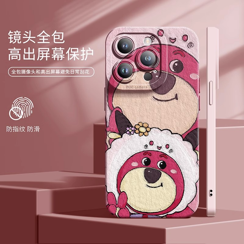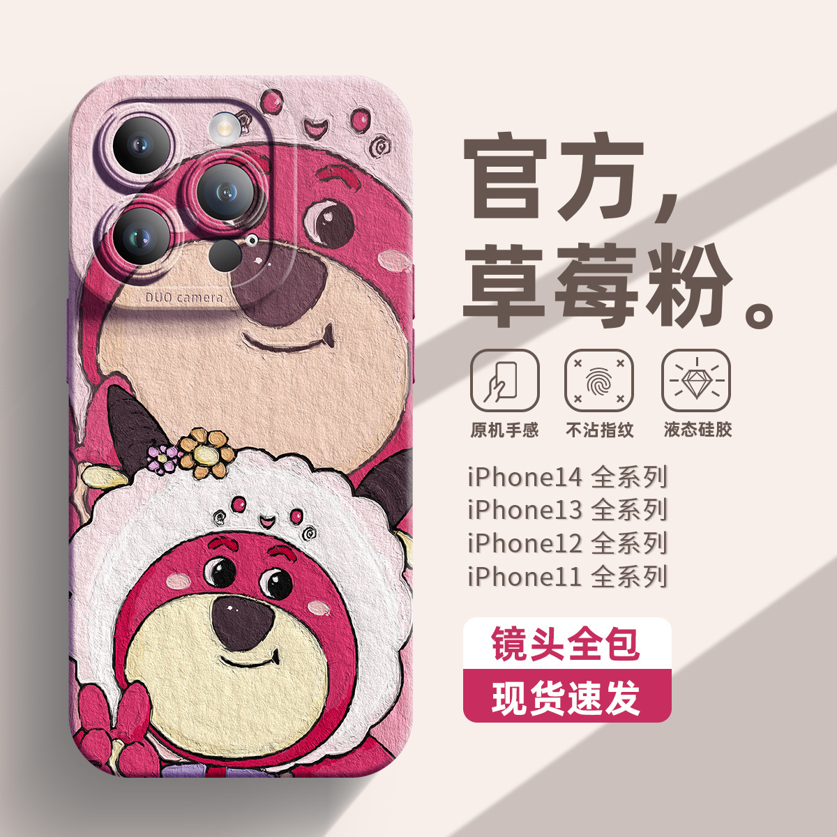 草莓头套适用于苹果14Pro手机壳新款15卡通熊iphone13Promax硅胶1
