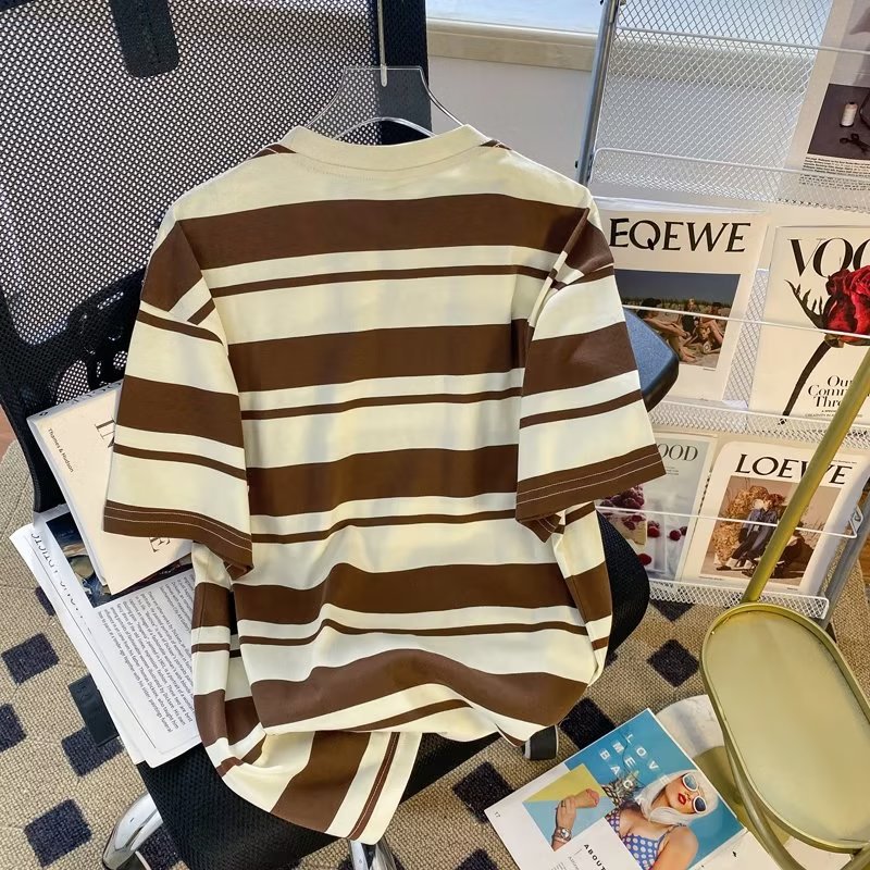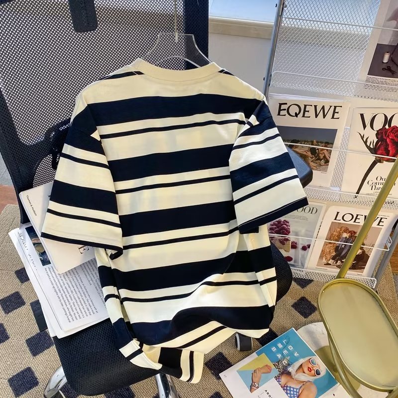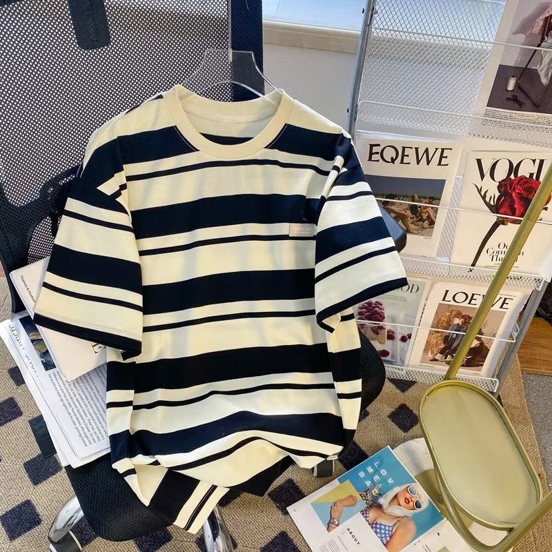 条纹短袖夏季新款宽松男生T恤撞色潮流打底衫情侣圆领休闲体恤衫