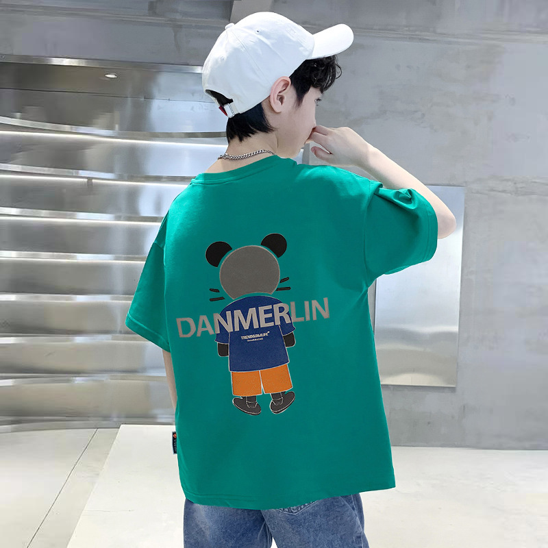 男童短袖纯棉t恤夏季童趣卡通休闲中大童半袖t男孩帅气宽松童装潮