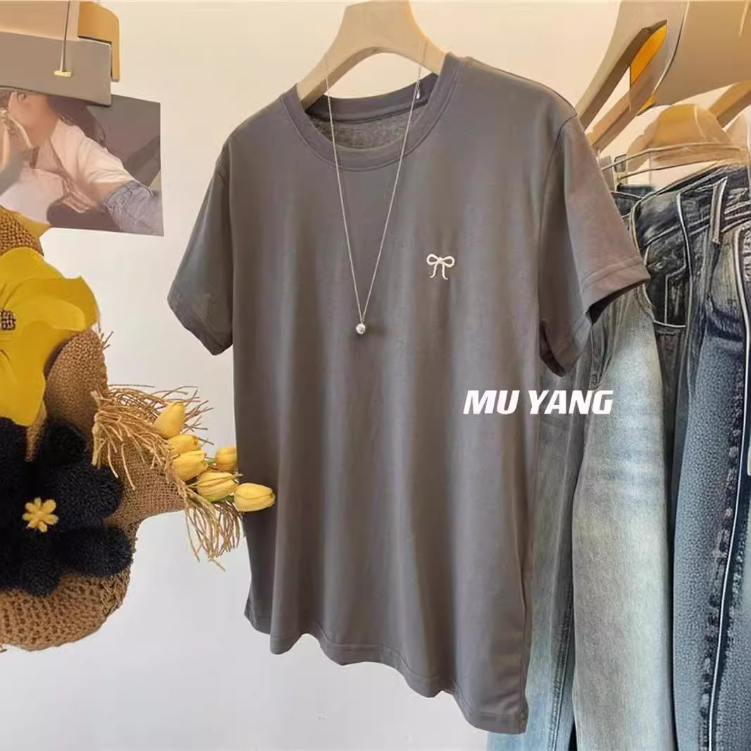 超手感莫代尔薄款刺绣蝴蝶结短袖T恤女夏季新款宽松显瘦上衣服潮