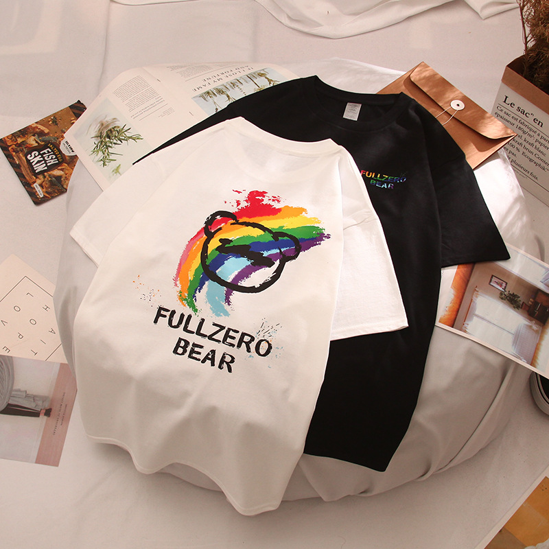 夏季新款卡通印花字母圆领印花休闲大码情侣装短袖t恤女DT237