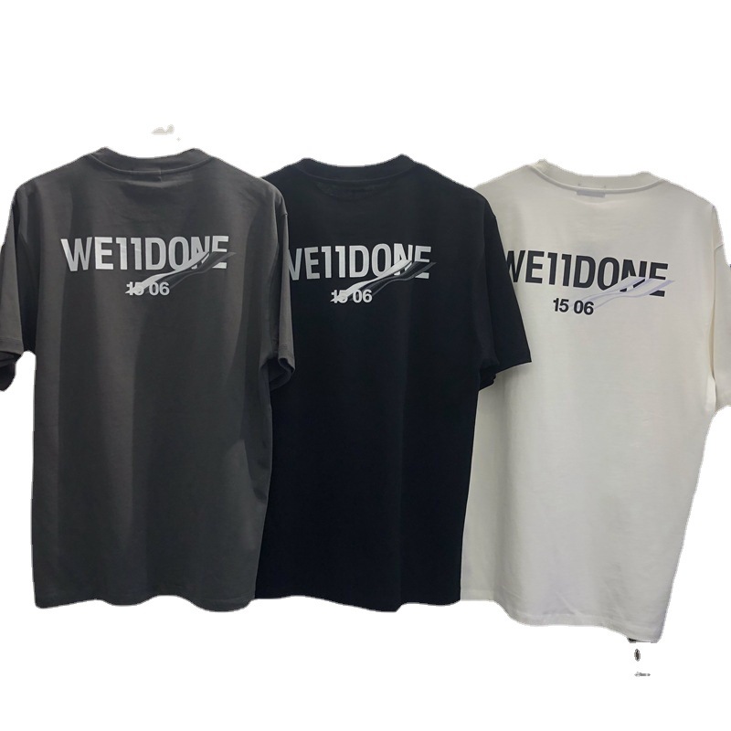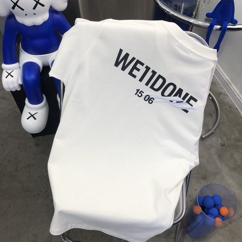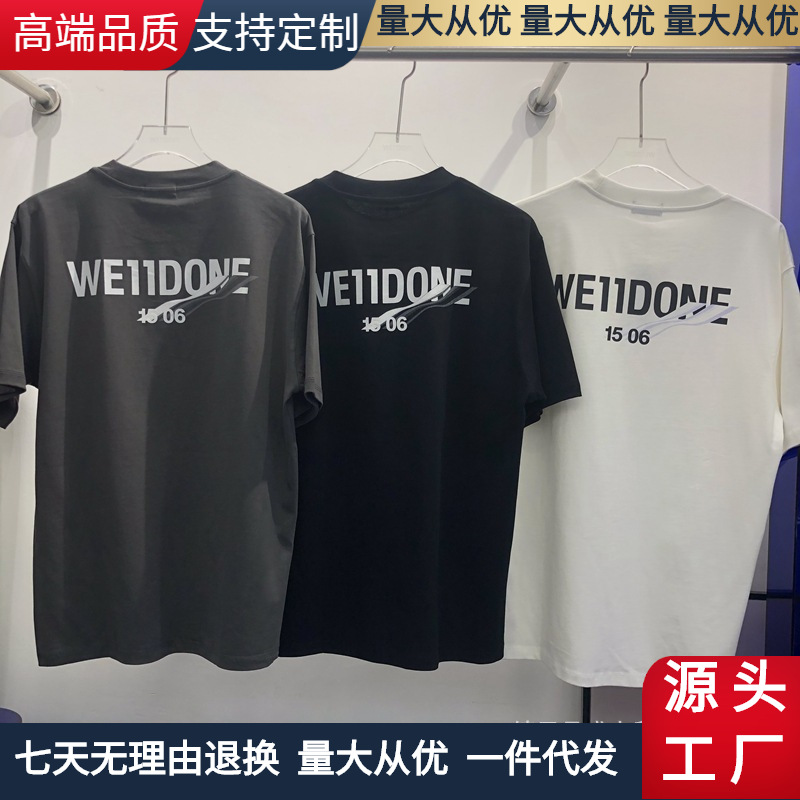 300克we11d新款简约海浪字母印花短袖男女同款宽松休闲情侣T恤潮