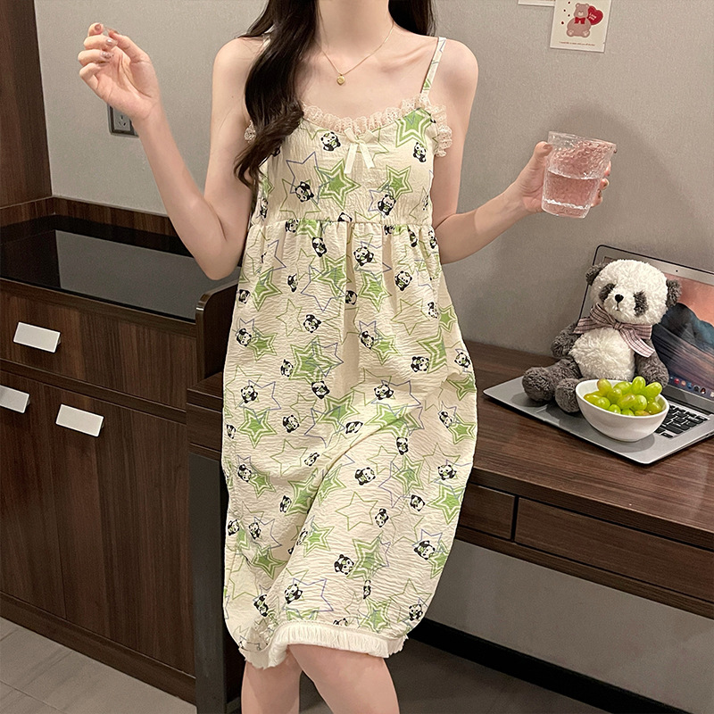 宏达盛-夏季新款云朵棉睡裙女甜美公主风蕾丝花边家居服连衣裙