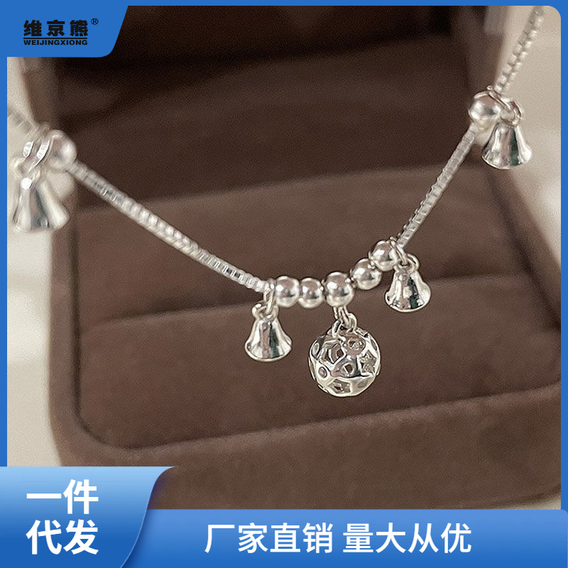 脚链女孩纯银925宫铃古风圆球铃铛网红聂小倩铃铛环新款夏