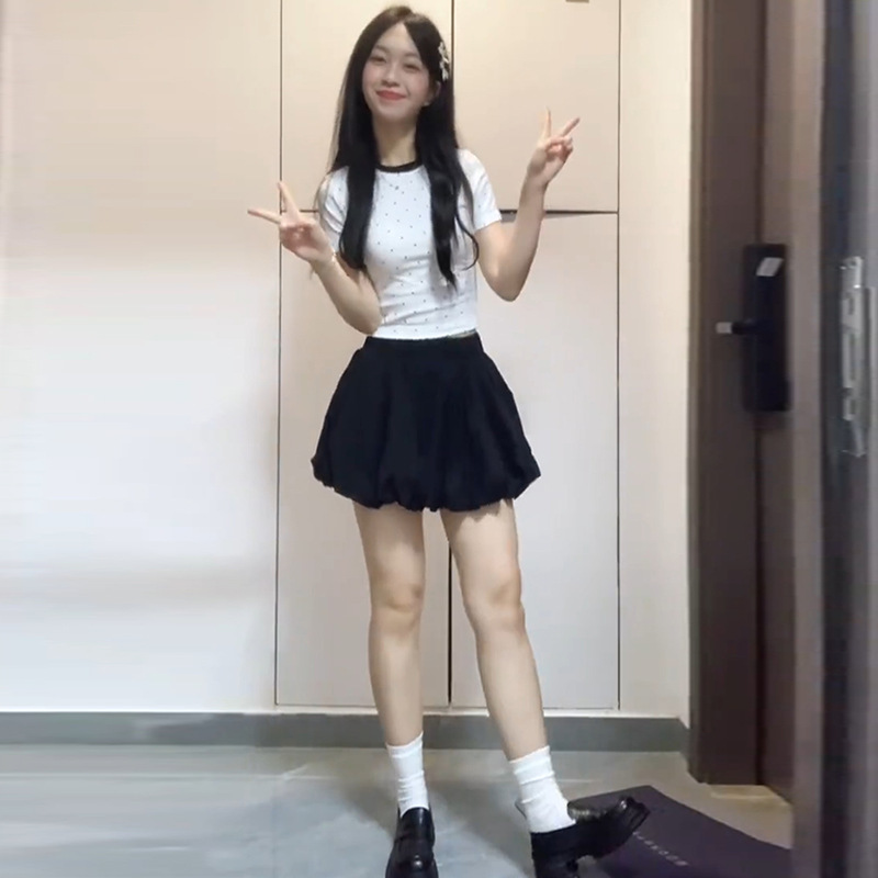 黑色花苞短裙女2025夏季新款高腰a字蓬蓬裙法式芭蕾风蛋糕半身裙