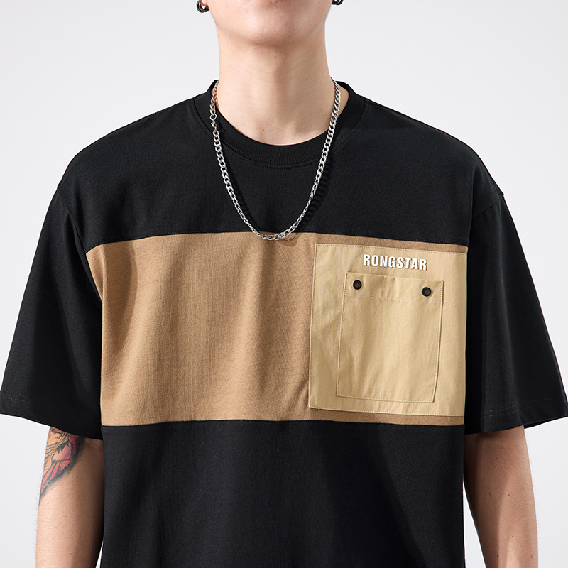 美式重磅T恤男短袖纯棉不规则设计感男士夏季潮牌ins宽松半袖体恤
