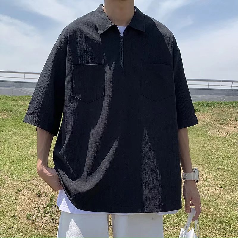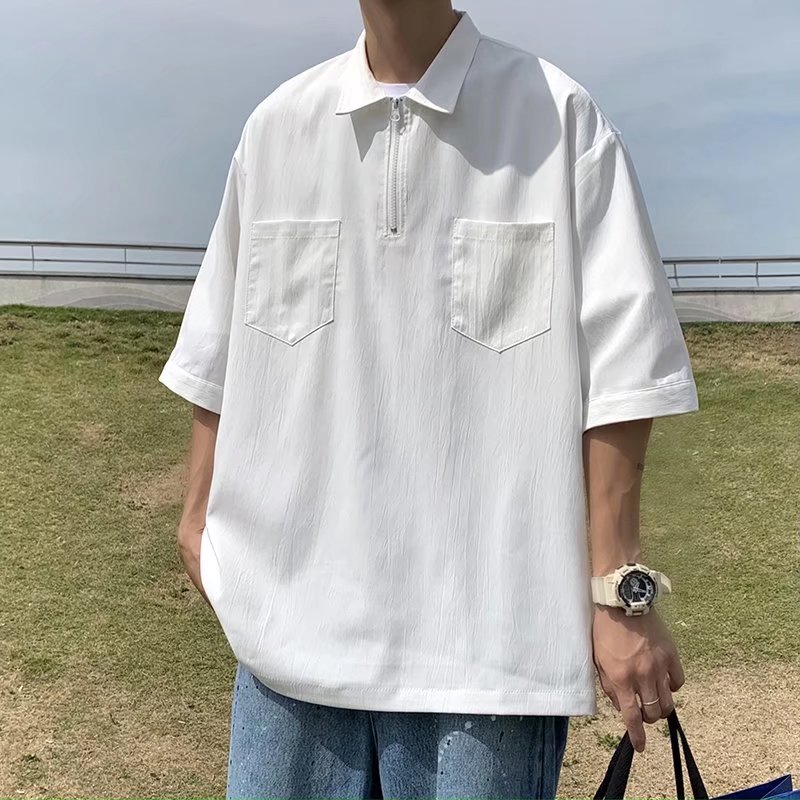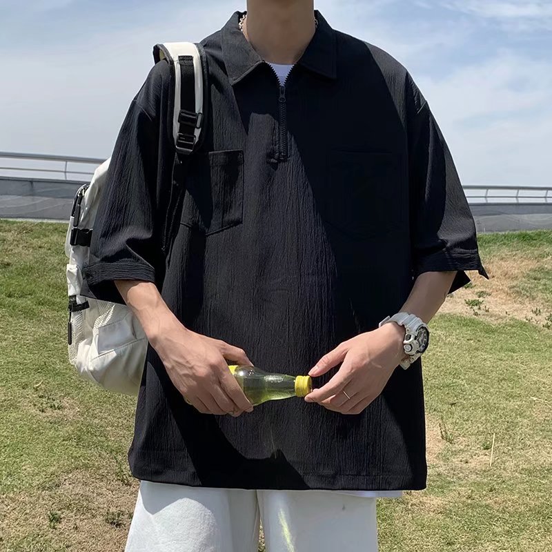 带领短袖t恤男ins韩版潮流宽松夏季新款港风青年半拉链POLO衫
