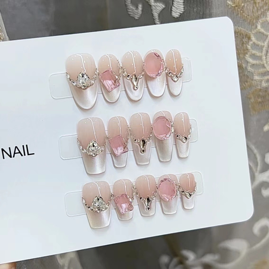 纯手工穿戴甲往日云烟温柔纯欲猫眼爆闪碎钻气质仙女高级感穿戴甲