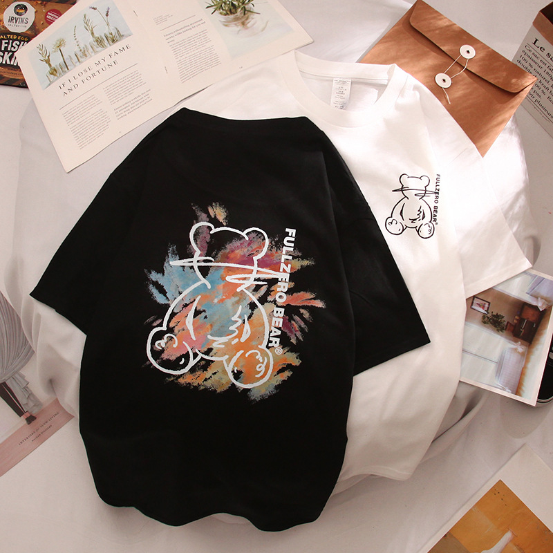 夏季新款字母印花卡通圆领休闲宽松半袖情侣装短袖男女DT465