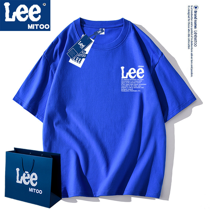 Lee&mitoo夏季新款潮流纯棉半袖体恤潮牌短袖t恤男士宽松情侣上衣